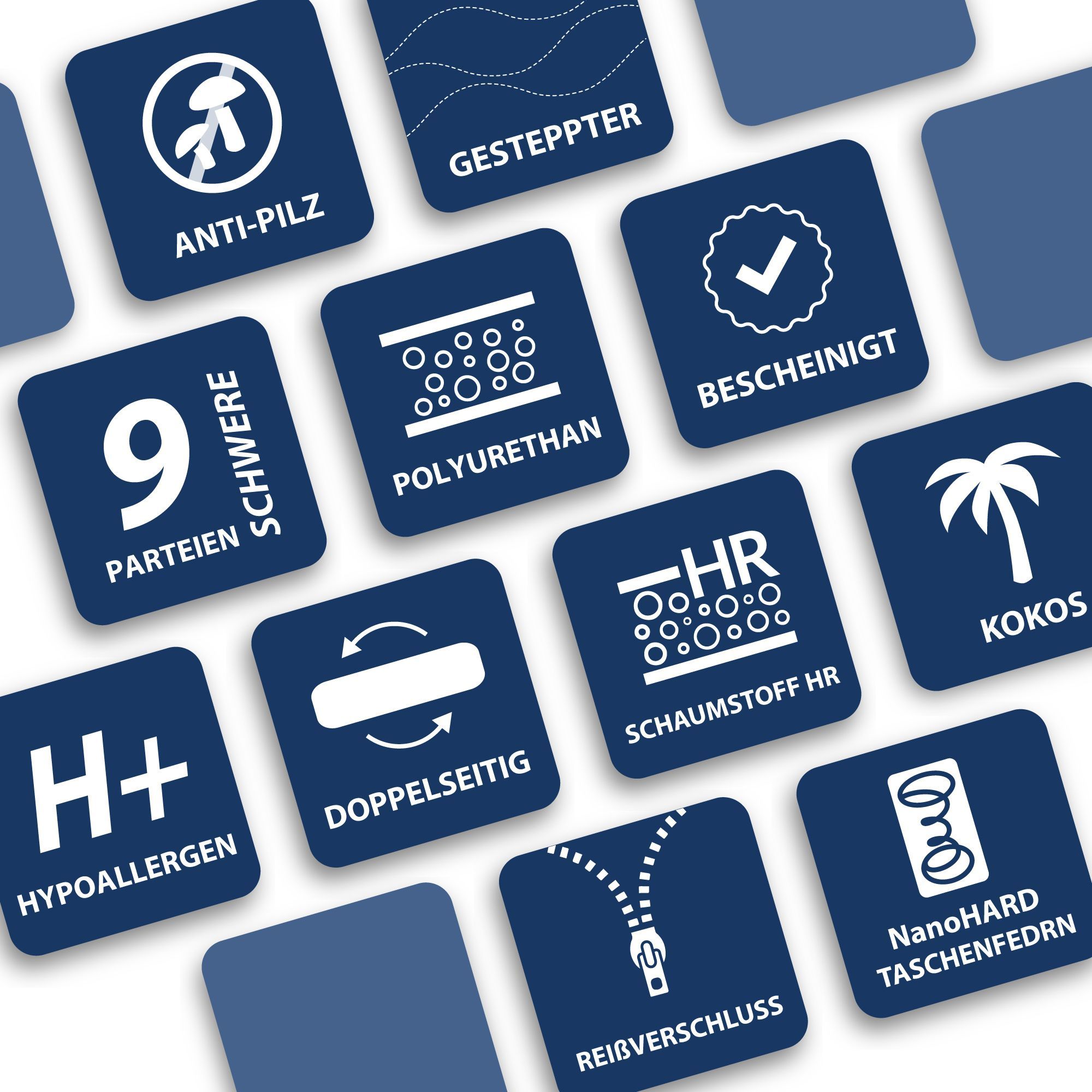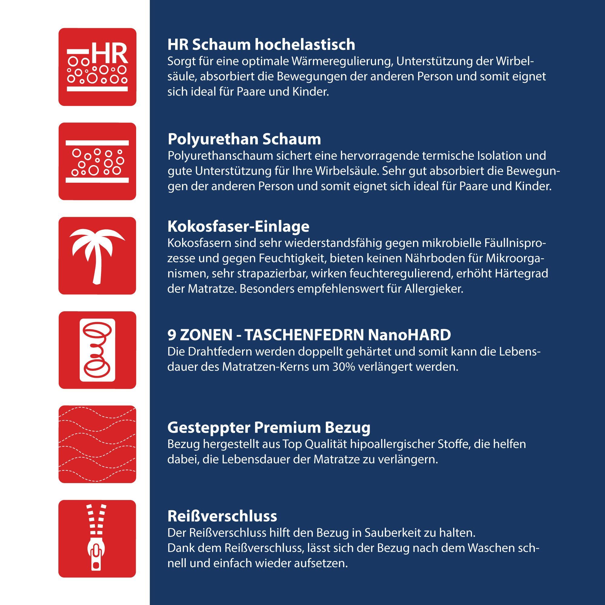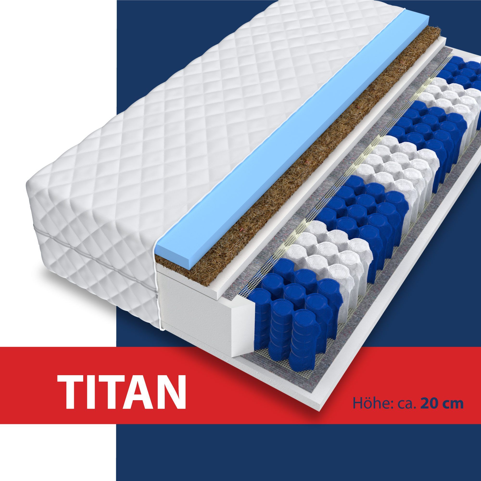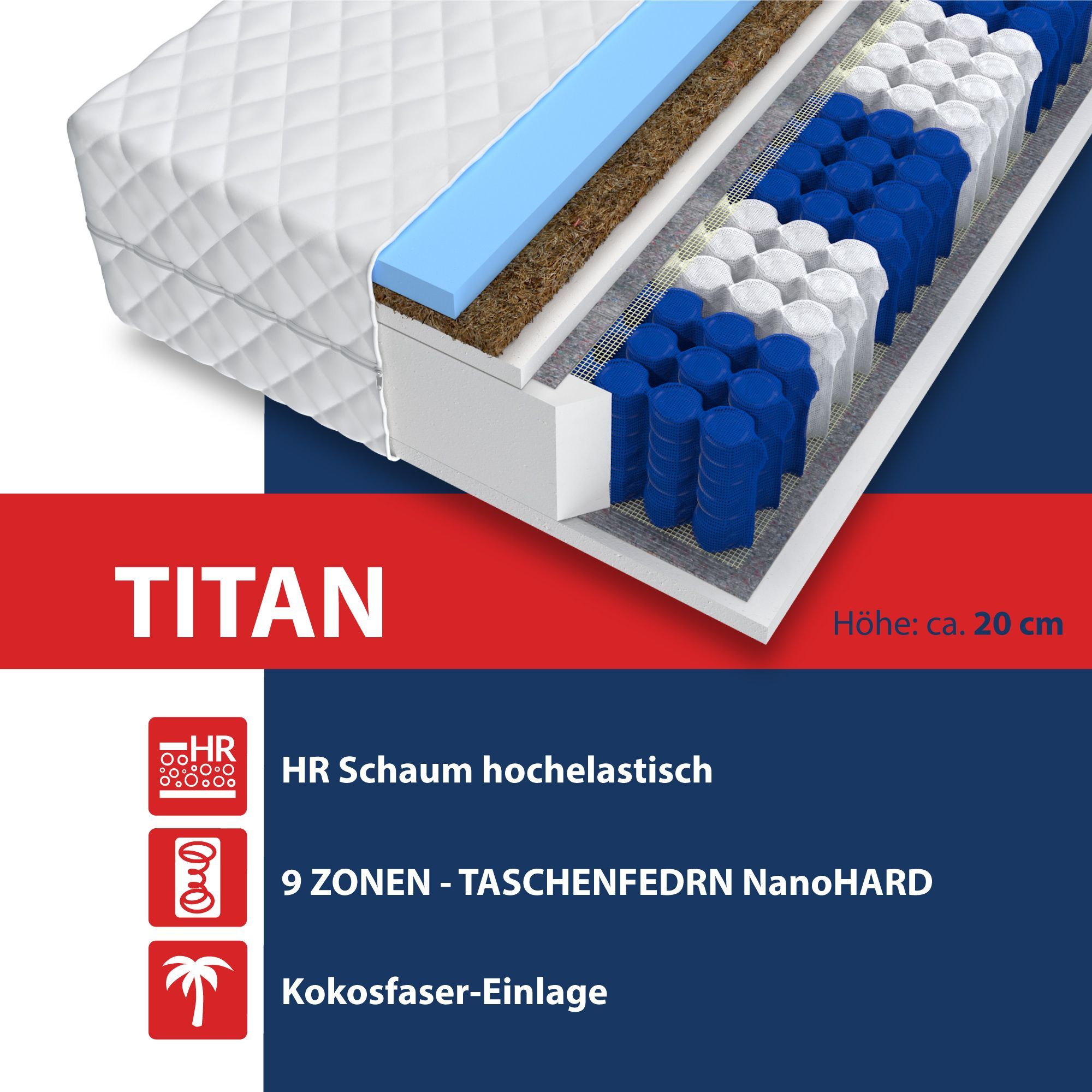 Matratze TITAN 9 Zonen Hybrid FOAM Taschenfederkern KOKOS H2 H3 Größe wählbar