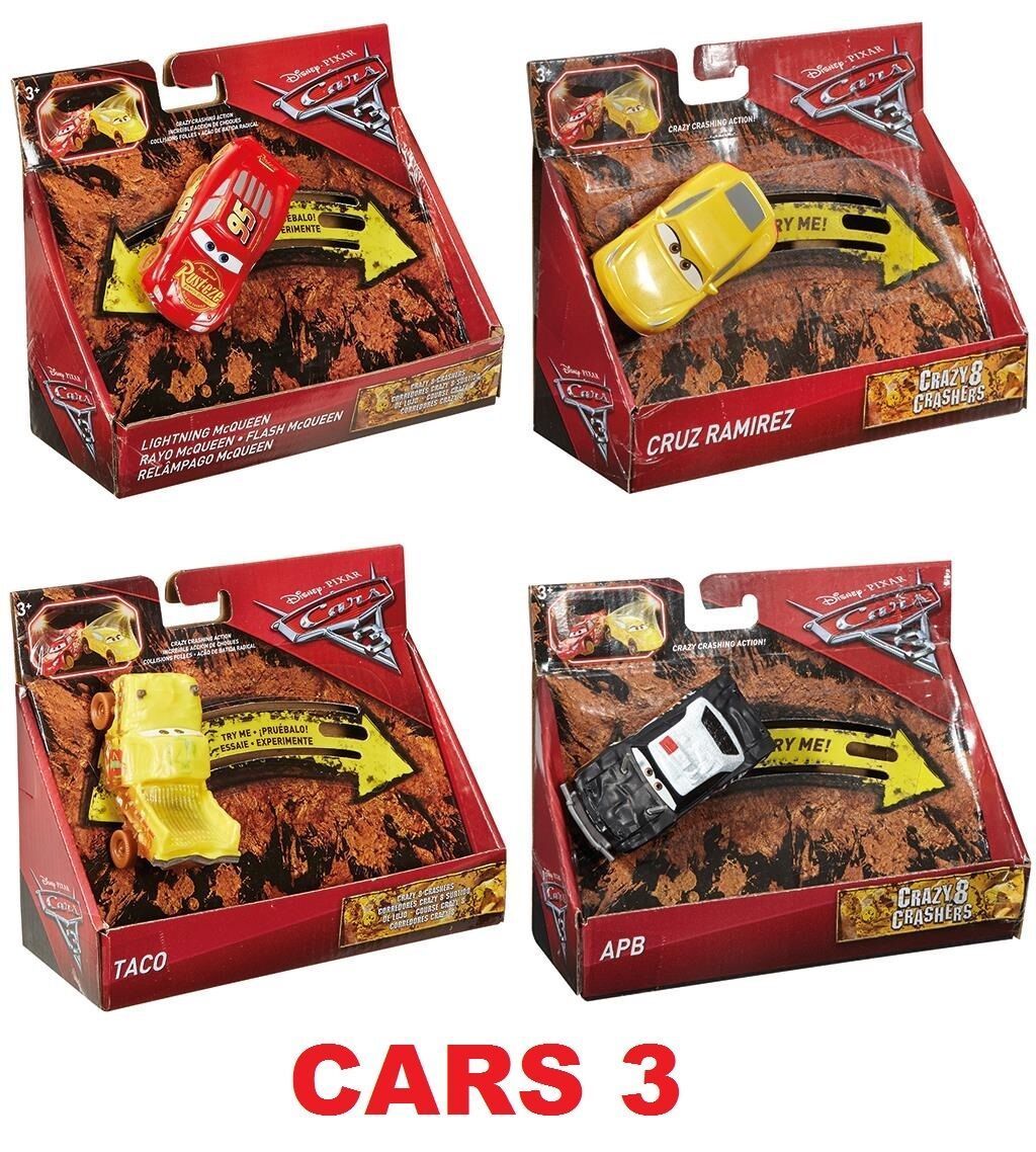 @ brick-store - - - ---- Mattel Disney Cars 3 Crazy 8 Crasher Auswahl an Cars Crazy 8 Crasher Cars 3 kann es aufgezogen werden – wird das Fahrzeug anschließend losgelassen,rast es äußerst schnell nach vorne. Spektakuläre Stunts und Crashes sind so kein Problem mehr. Der Crazy 8 Crasher in Oversized-