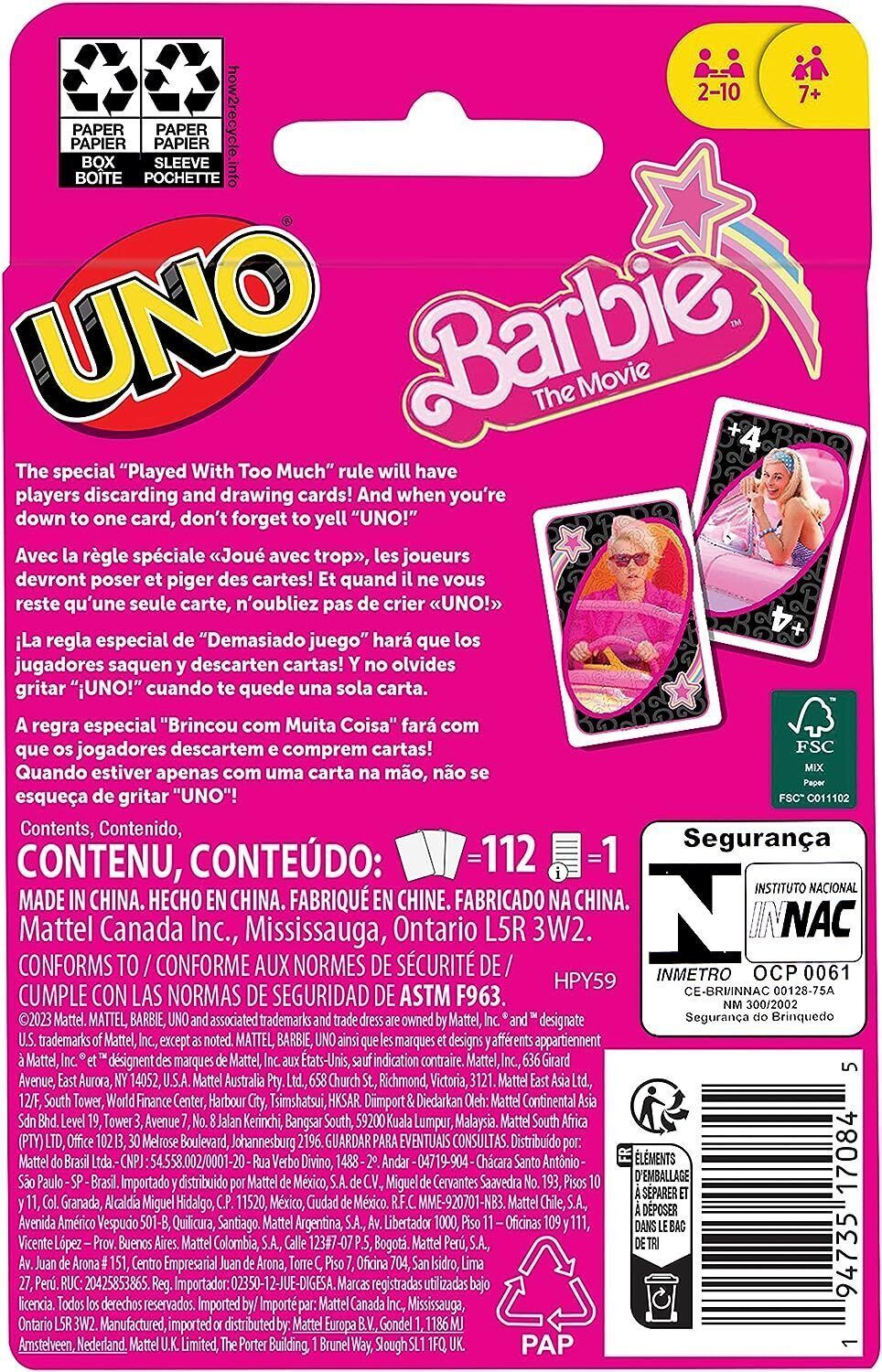 Mattel Mattel HPY59 BARBIE THE MOVIE UNO Kartenspiel Kleidung Mädchen Familienspiel
