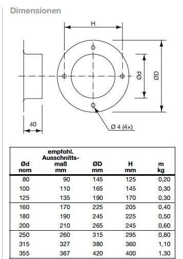 Mauerhülse für Wickelfalzrohr DN 100 bis 450 mm Stahl verzinkt