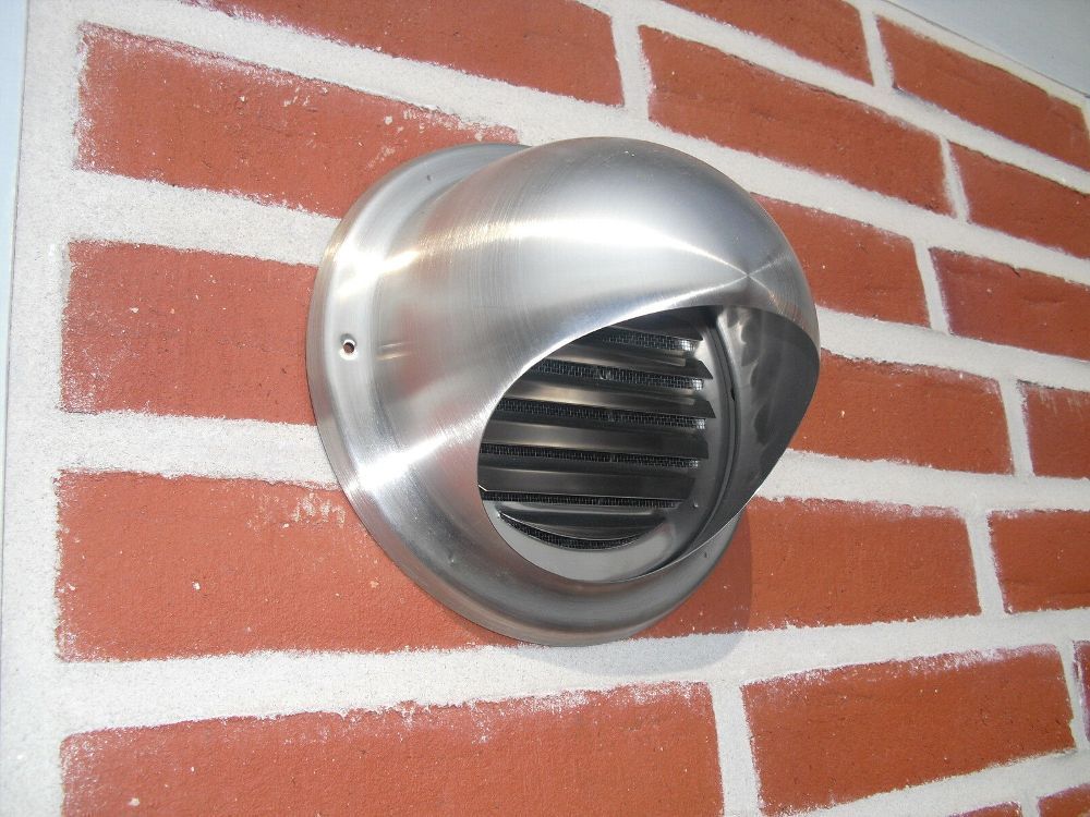 Mauerkasten mit Teleskop Rohr, Rückstauklappe und Edelstahl Wetterschutzgitter In den Nennwieten 100, 125, 150 bestehend aus: Teleskop Rohr, ausziehbar von 300mm Länge auf 550mm Länge mit Rückstauklappe BDSI mit Aluminum Klappenblättern und Edelstahl Federn Wandflansch mit Klappenblatt zum Abdecken