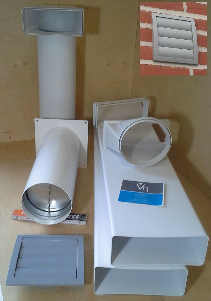 Mauerkasten Ø150 Dunstabzug Rückstauklappe Flachkanal Set S5-MKWSKQLG150-BDSI