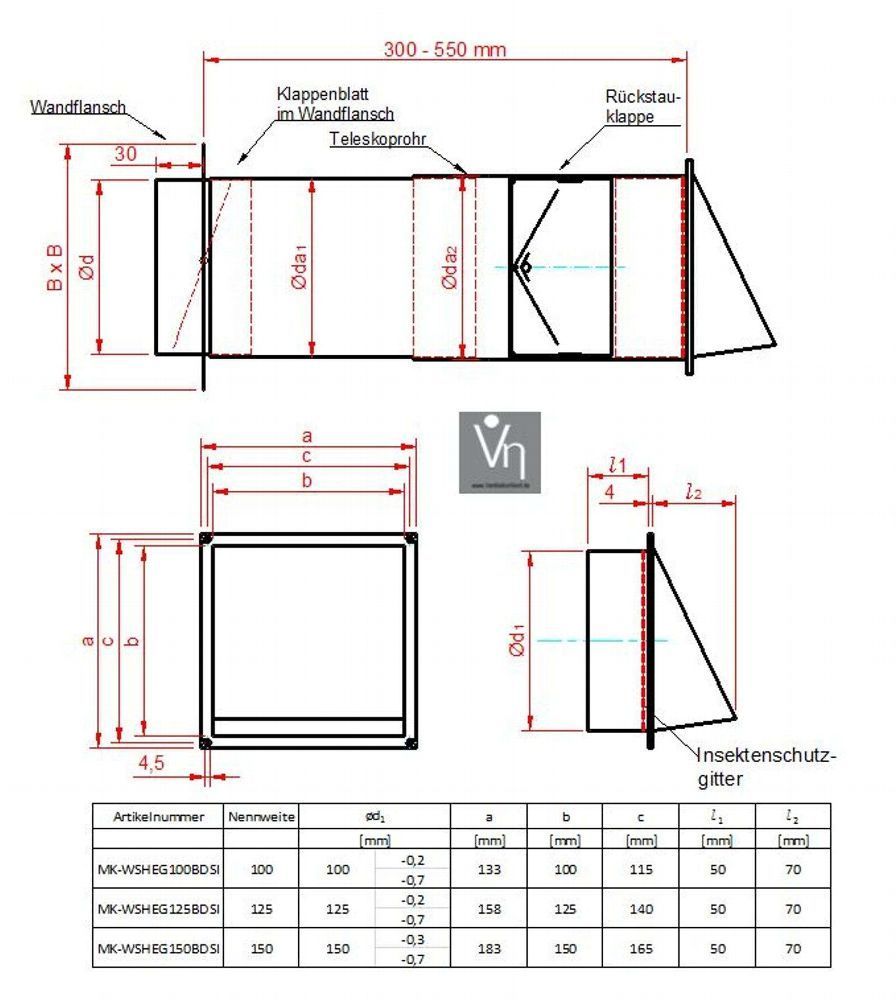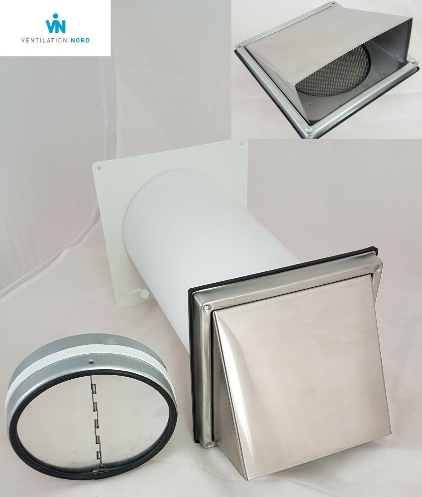 Mauerkasten 150 Dunstabzug Teleskop Rohr Rückstauklappe Edelstahl MKWSHE3150BDSI