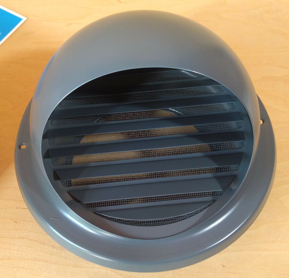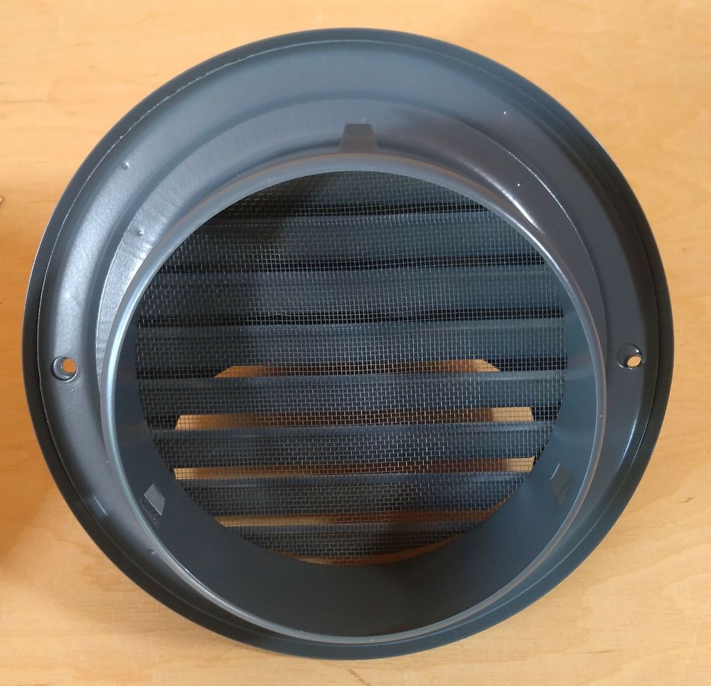 Mauerkasten NW 150, Teleskop Rohr mit Edelstahl Wetterschutzgitter, pulverbeschichtet grau bestehend aus: Teleskop Rohr NW 150, ausziehbar von 300mm Länge auf 550mm Länge mit Rückstauklappe BDSI150 mit Aluminum Klappenblättern und Edelstahl Federn Wandflansch mit Klappenblatt zum Abdecken der Kernbo