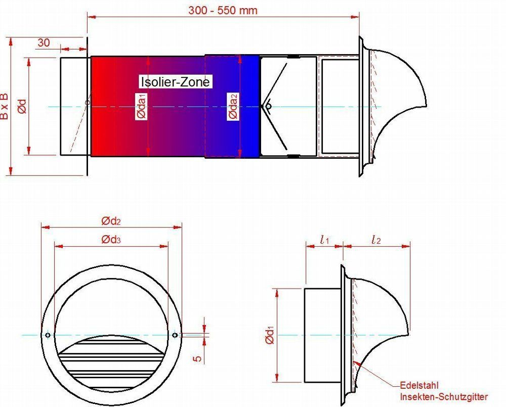 Mauerkasten 150 Dunstabzug Teleskop Rohr Rückstauklappe Edelstahl MKWSKE150BDSIG