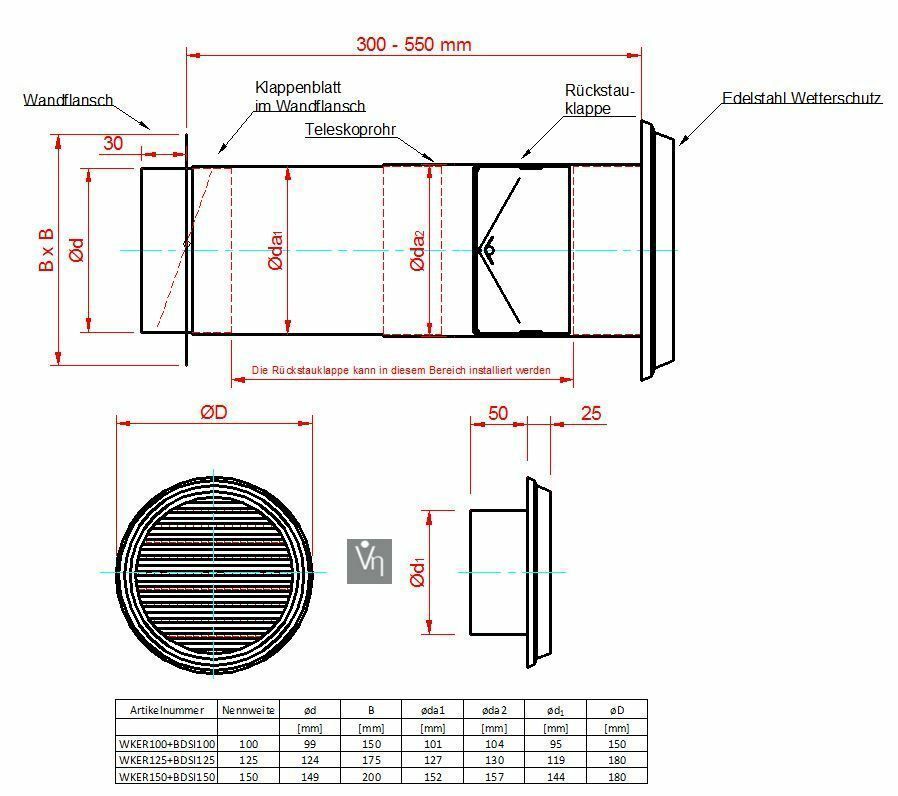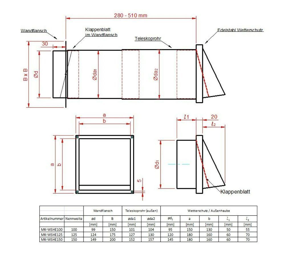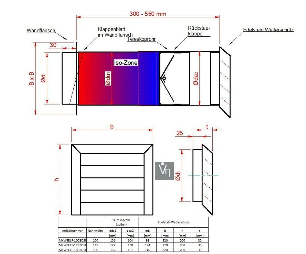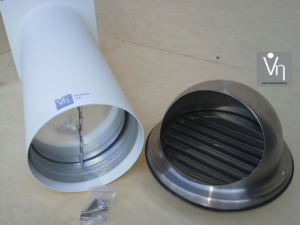 Mauerkasten NW 100 125 150 Teleskoprohr Edelstahl Gitter Haube Rückstauklappe