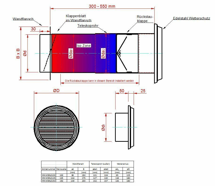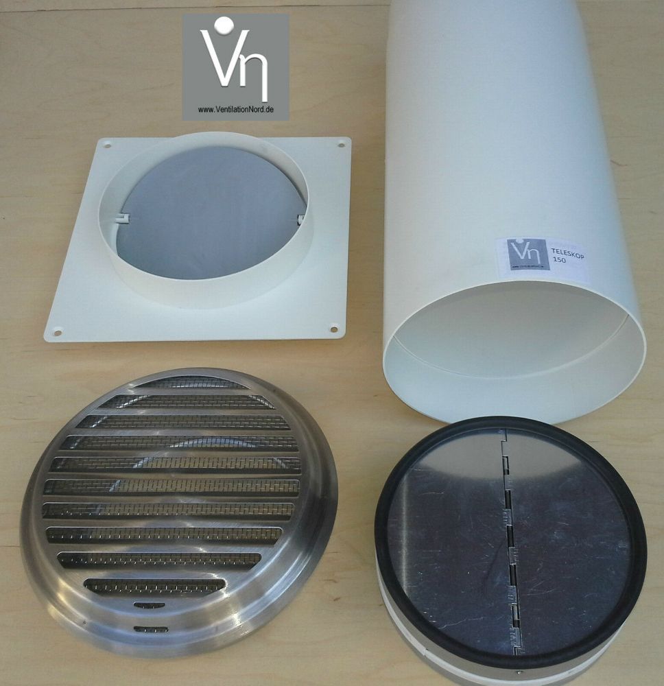 Mauerkasten NW 100 125 150 Teleskoprohr Edelstahl Gitter Rückstauklappe Mkwsrle