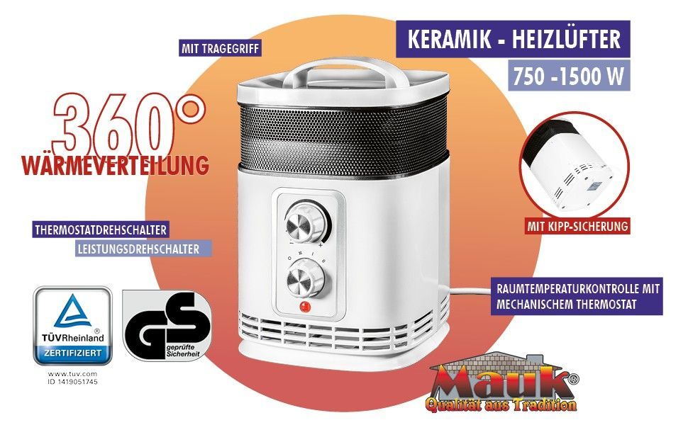 Mauk 360° Heizlüfter Keramik Heizung Heizgerät Heizstrahler Heizer Mini Mobile