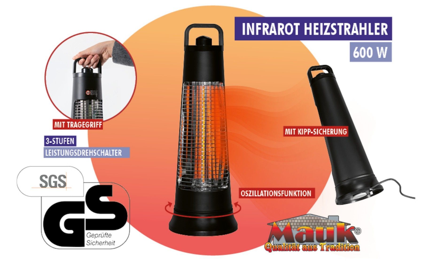 MAUK Karbonfaser Standheizgerät Terrassenheizung Heizgerät Heizstrahler Heizer