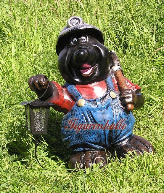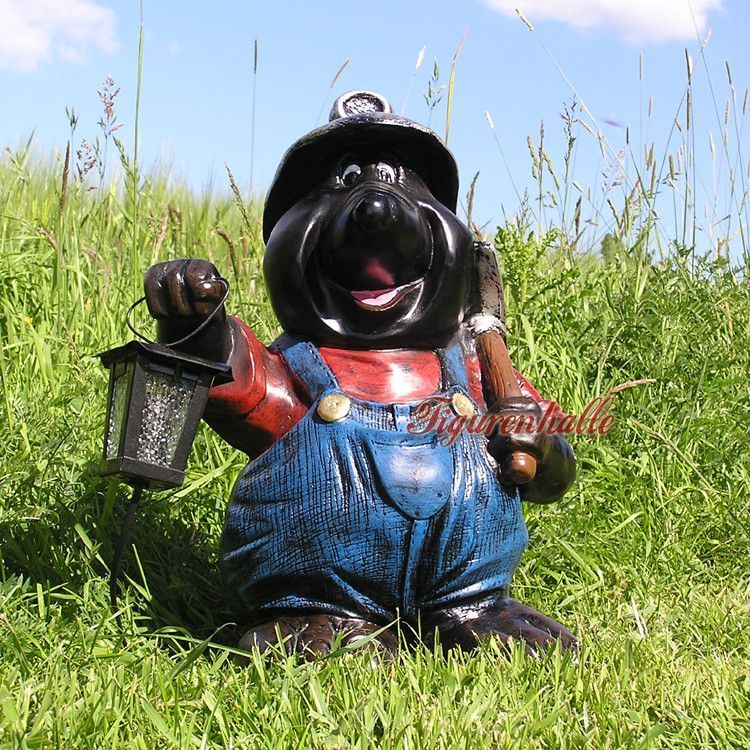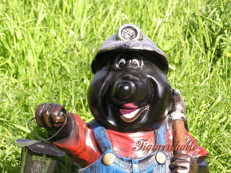 Maulwurf als Bergarbeiter mit Lampe Statue Skulptur Deko Gartenfigur Garten lustig