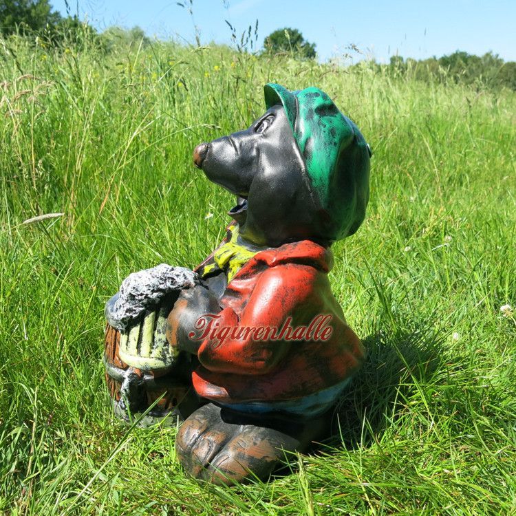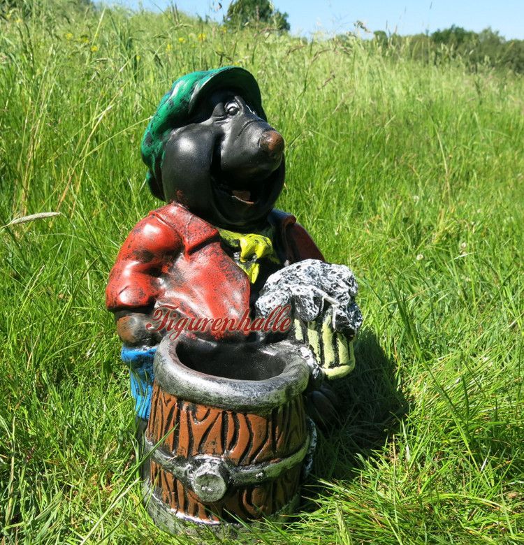 Maulwurf Gartenfigur Gartenzwerg Garten Lustig Figur Deko Bier Biertrinken Fass