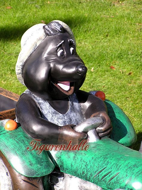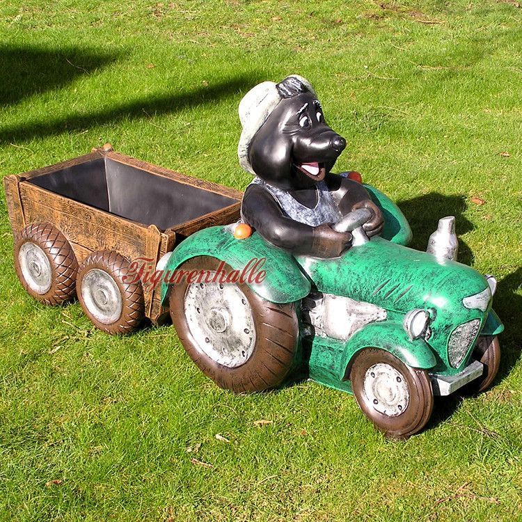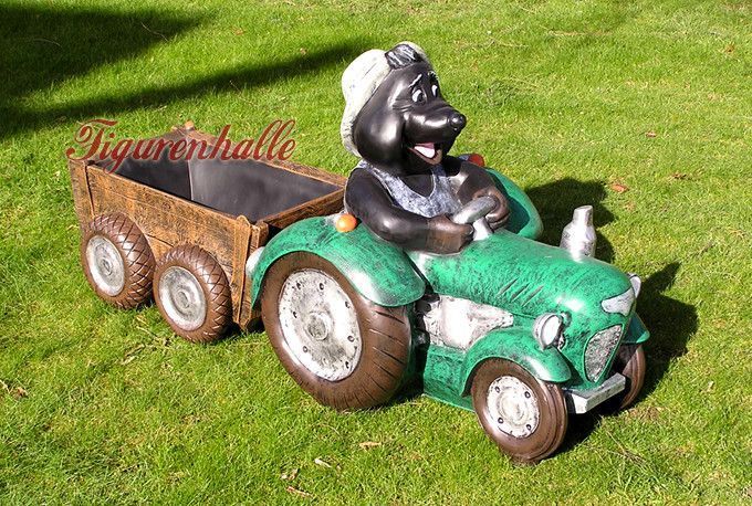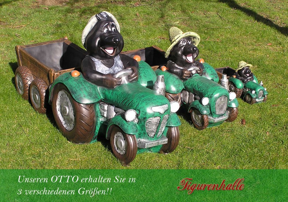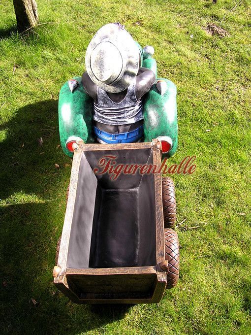 Maulwurf mit Trekker grün Bauer Statue Skulptur Deko Gartenfigur Garten lustig
