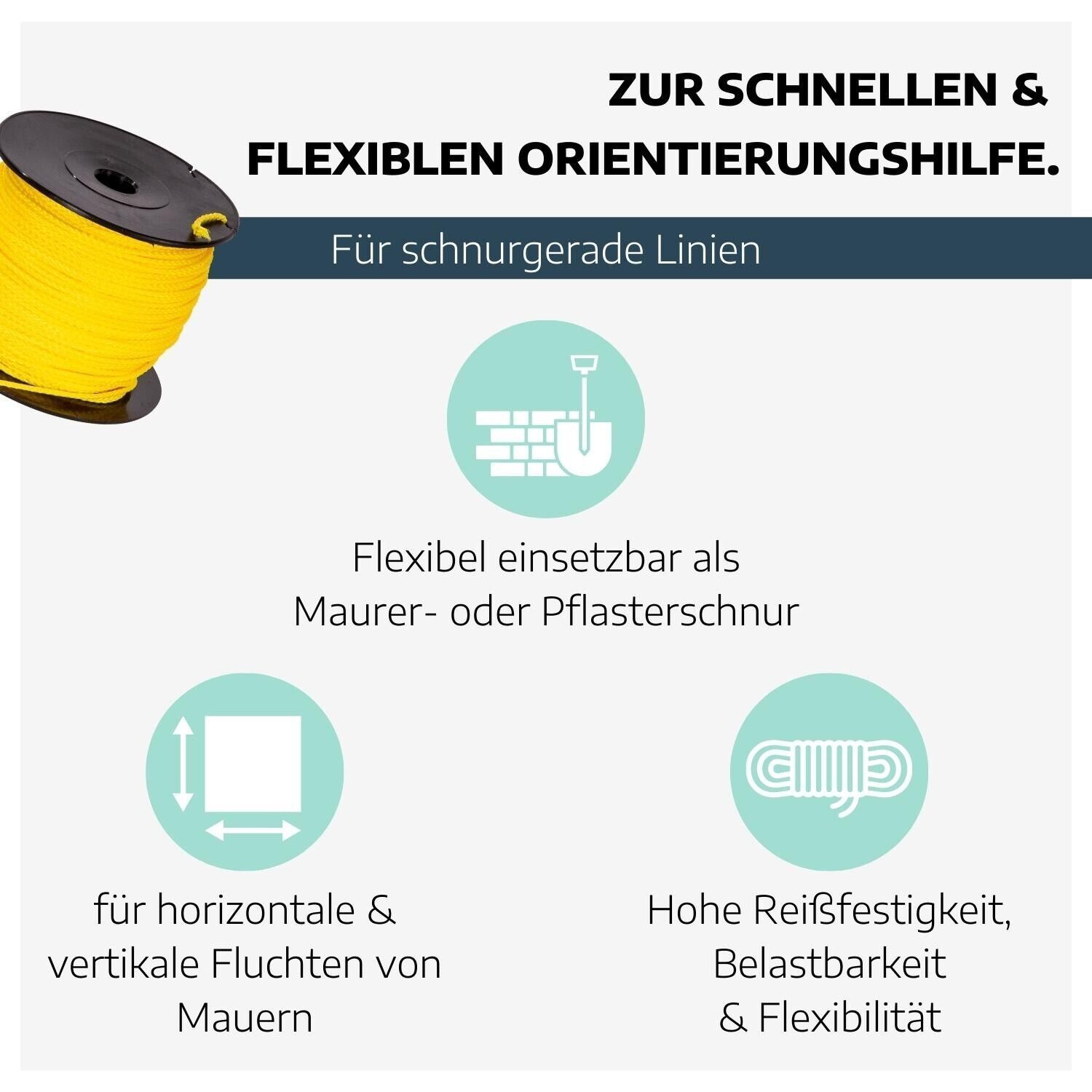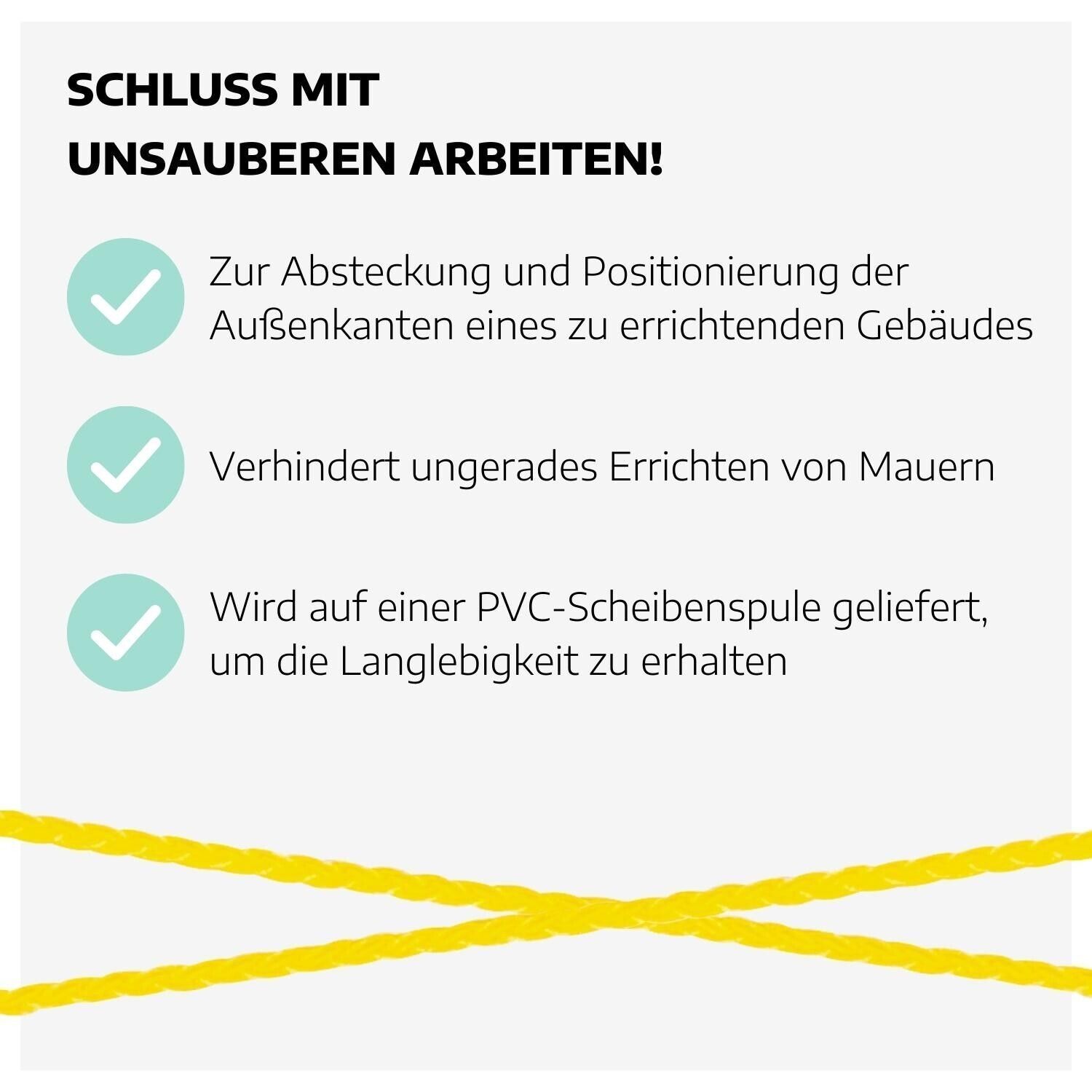 Maurerschnur Pflasterschnur Verlegeschnur Lotschnur Bauschnur gelb 2mm 12 Stück