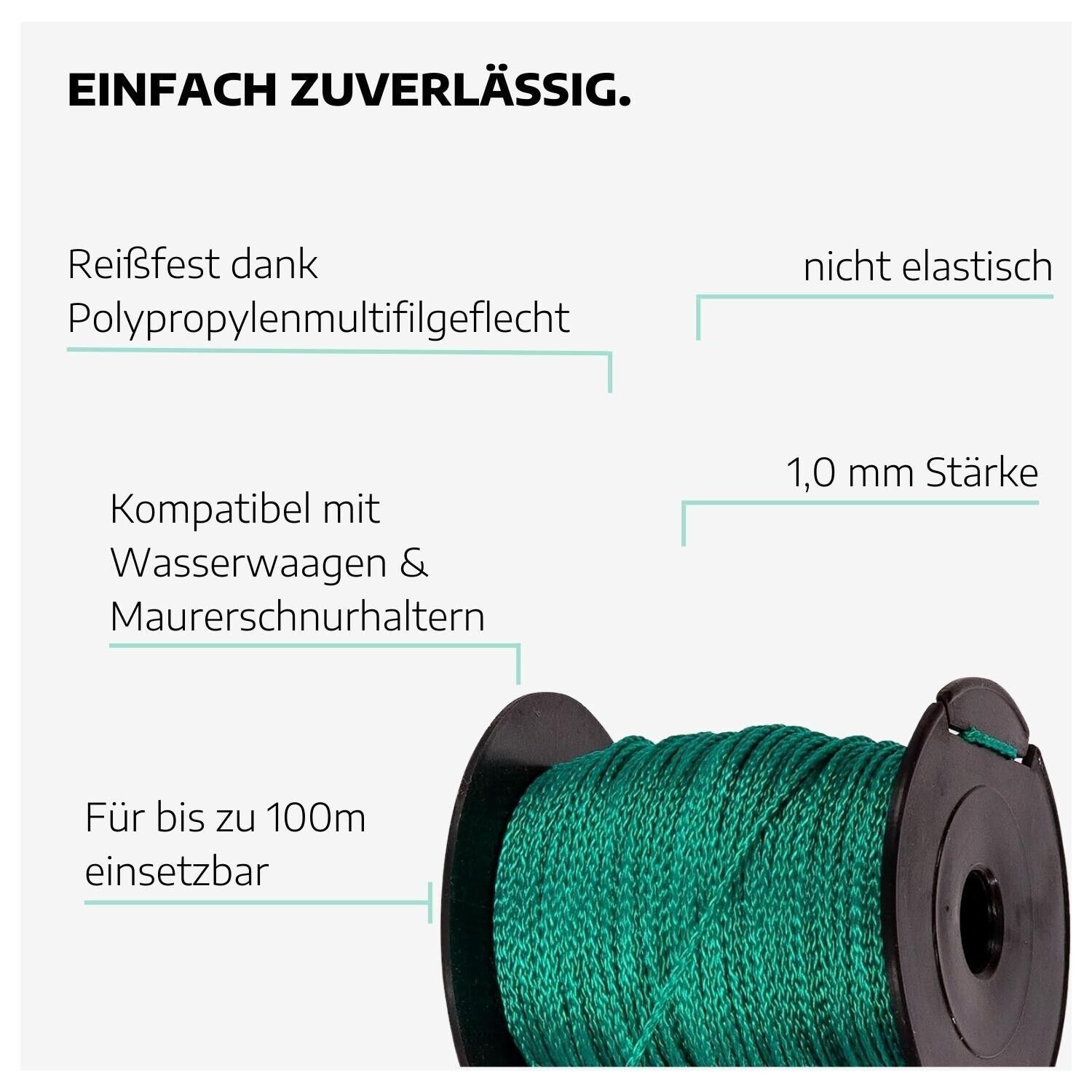 Maurerschnur Pflasterschnur Verlegeschnur Lotschnur Bauschnur grün 1mm 20 Stück
