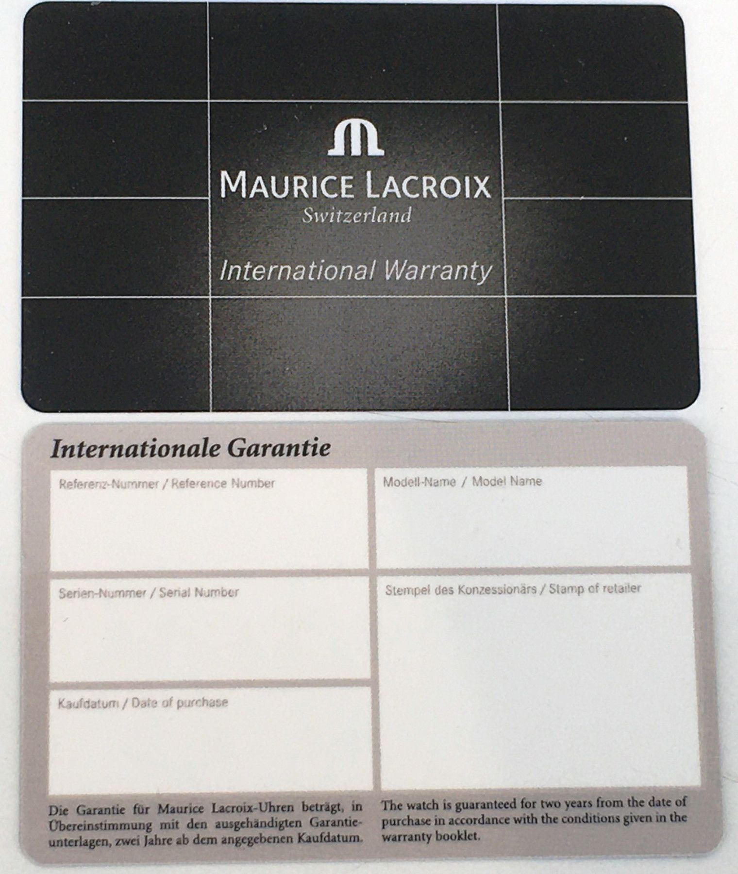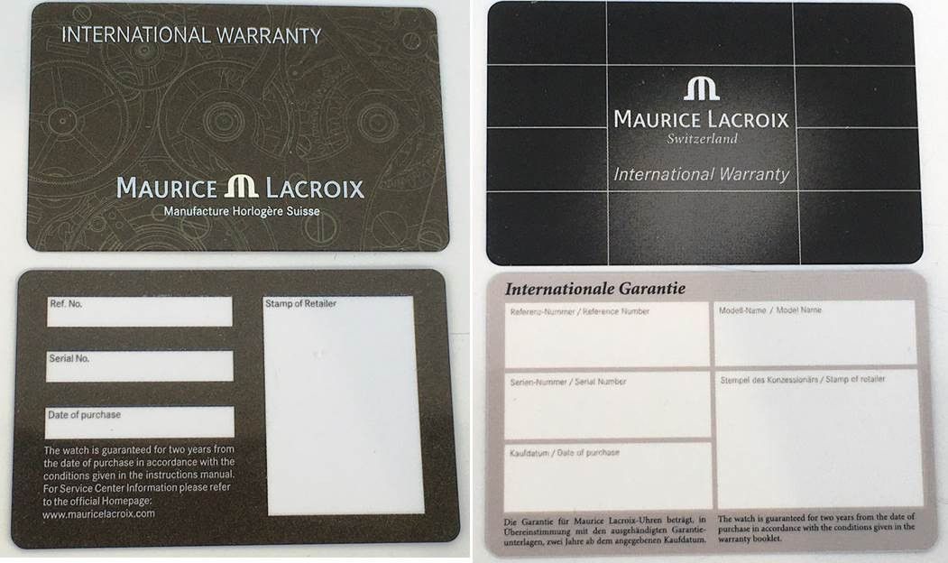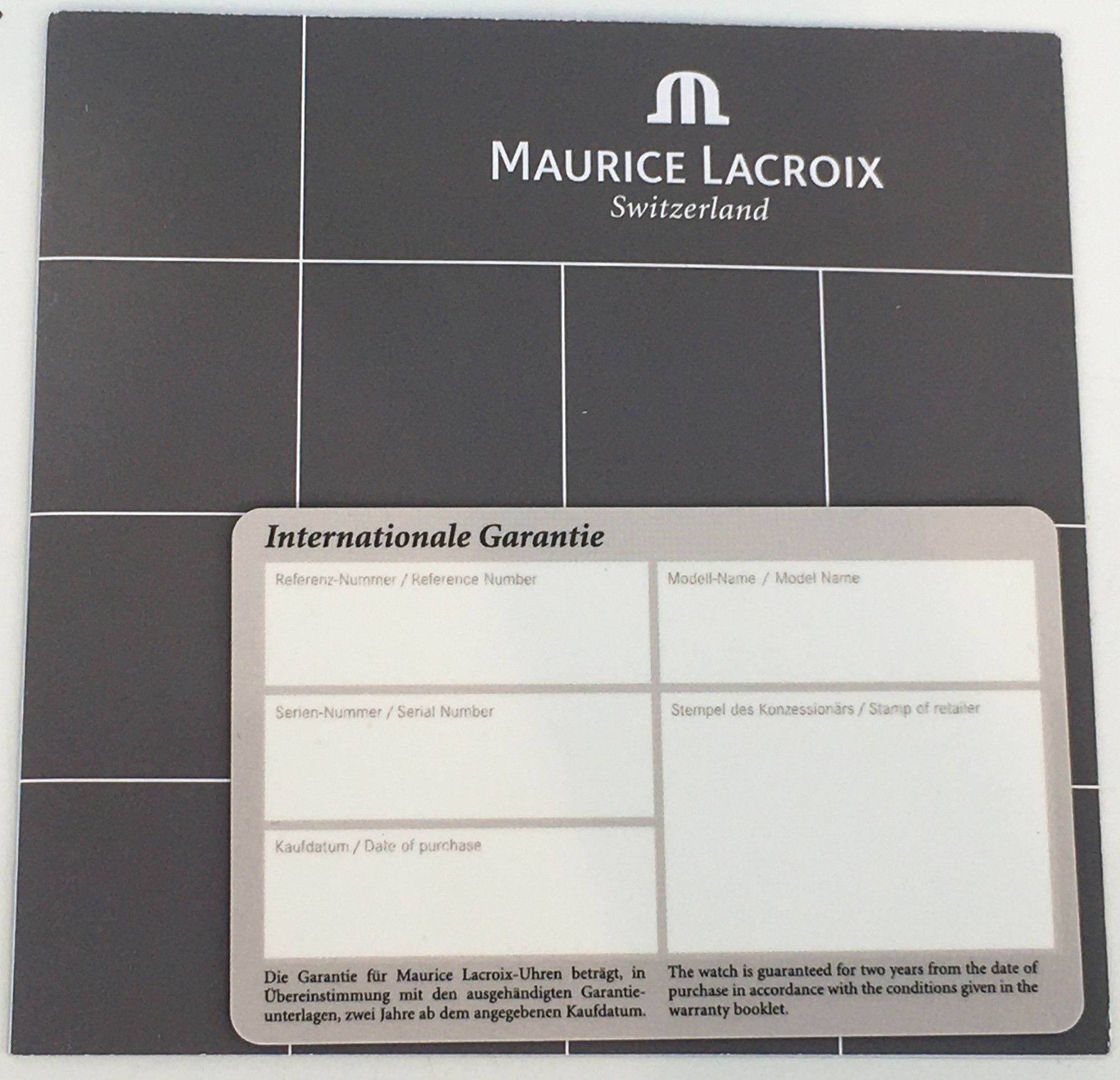 Maurice Lacroix Blanko Garantie Karte Heft International Warranty Booklet NEU!