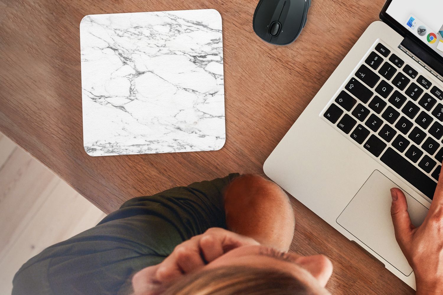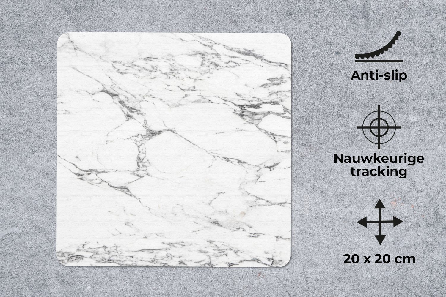 Mauspad - Schwarze Muster durch weißen Marmor - 20x20 cm