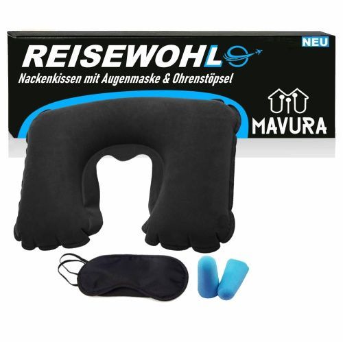 MAVURA Reisewohl Reise Nackenkissen Set Reisekissen Nackenhörnchen Nackenrolle aufbla