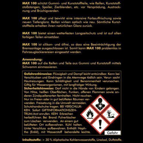 Max 100 500 ml Zubehör Set 3 Gummipflege Reifenpflege