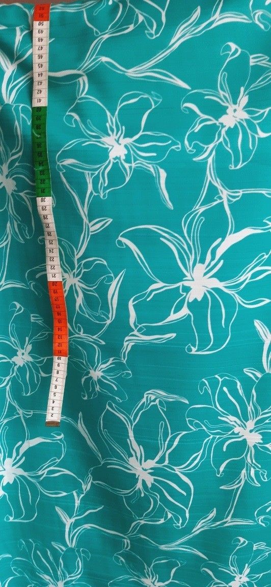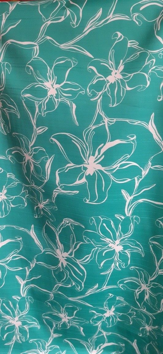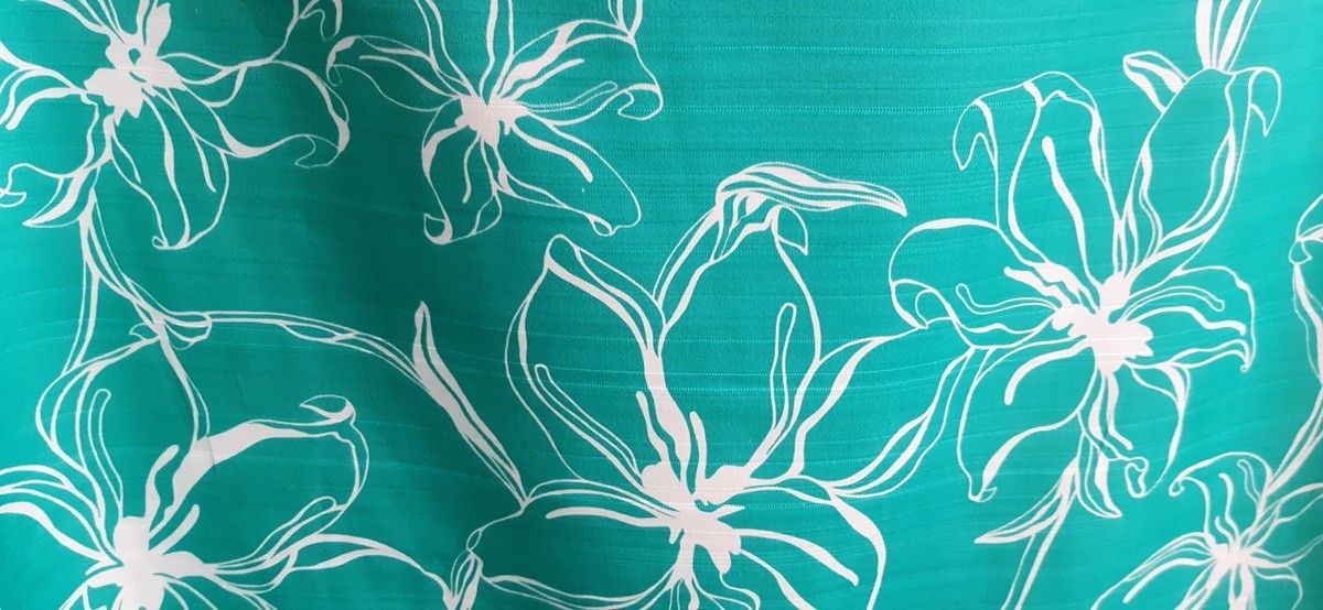Designerstoff in Italien produziert exclusiv für Max Mara (der Stoff stammt aus Überhängen der Produktion) *********************************************************************** Baumwollsatin großflächige Blumen in weiß auf grüntürkisem (hell-smaragd) Grund Besonderheit: es sind unterschiedliche Qu