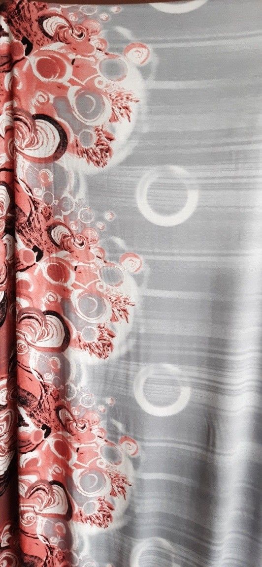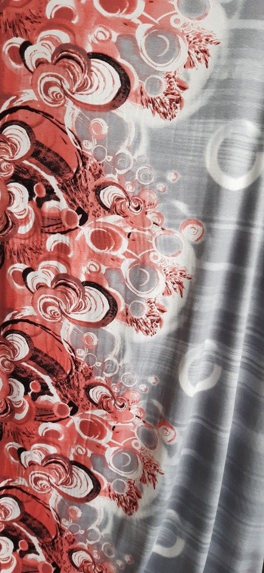 Designerstoff in Italien produziert exclusiv für Max Mara (der Stoff stammt aus Überhängen der Produktion) *********************************************************************** feiner Viskosejersey aus 96 % Viskose und 4 % Elasthan Bordürendruck in altrosa-weiß-schwarz in jeweils ca. 40 cm Breite