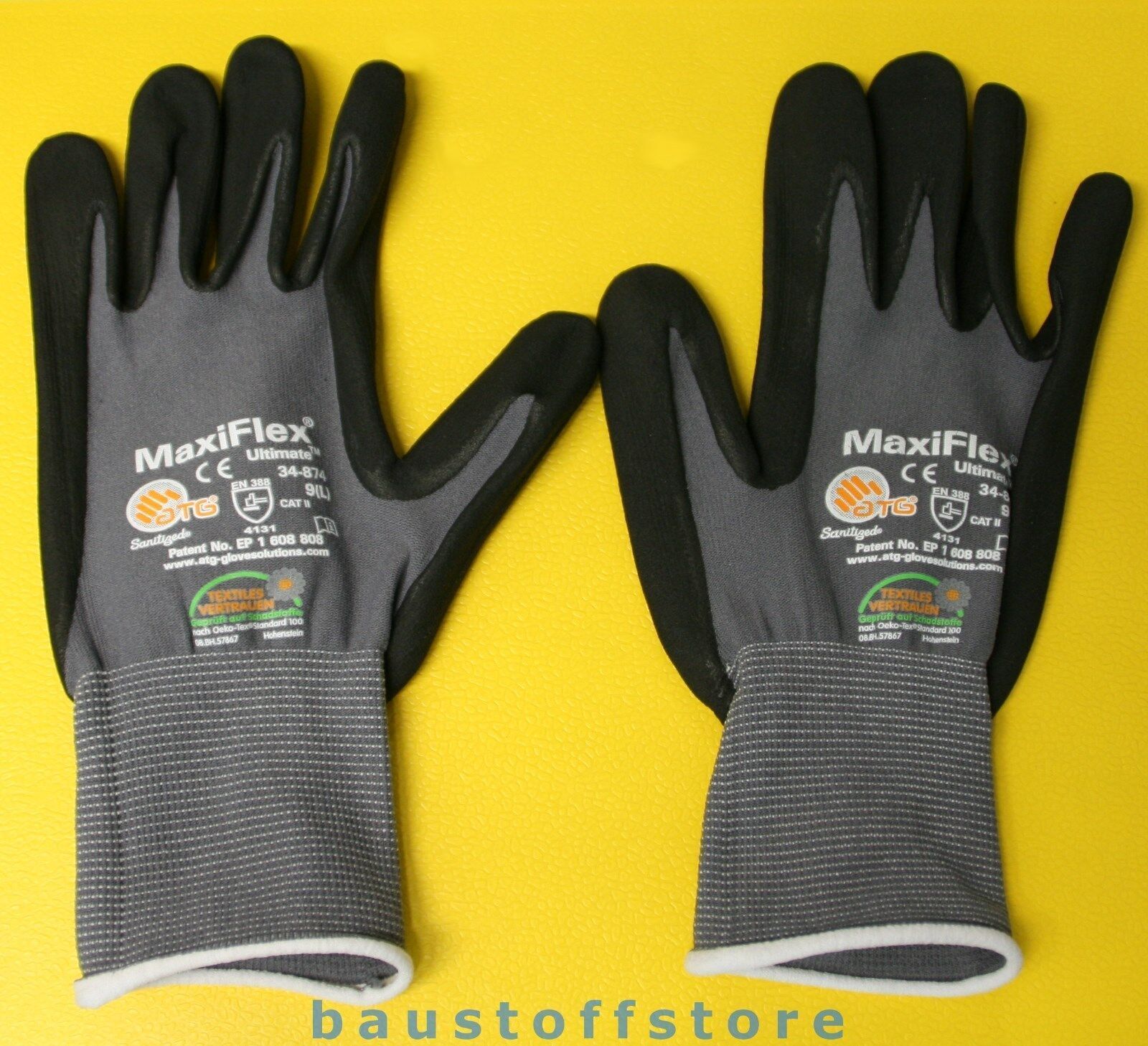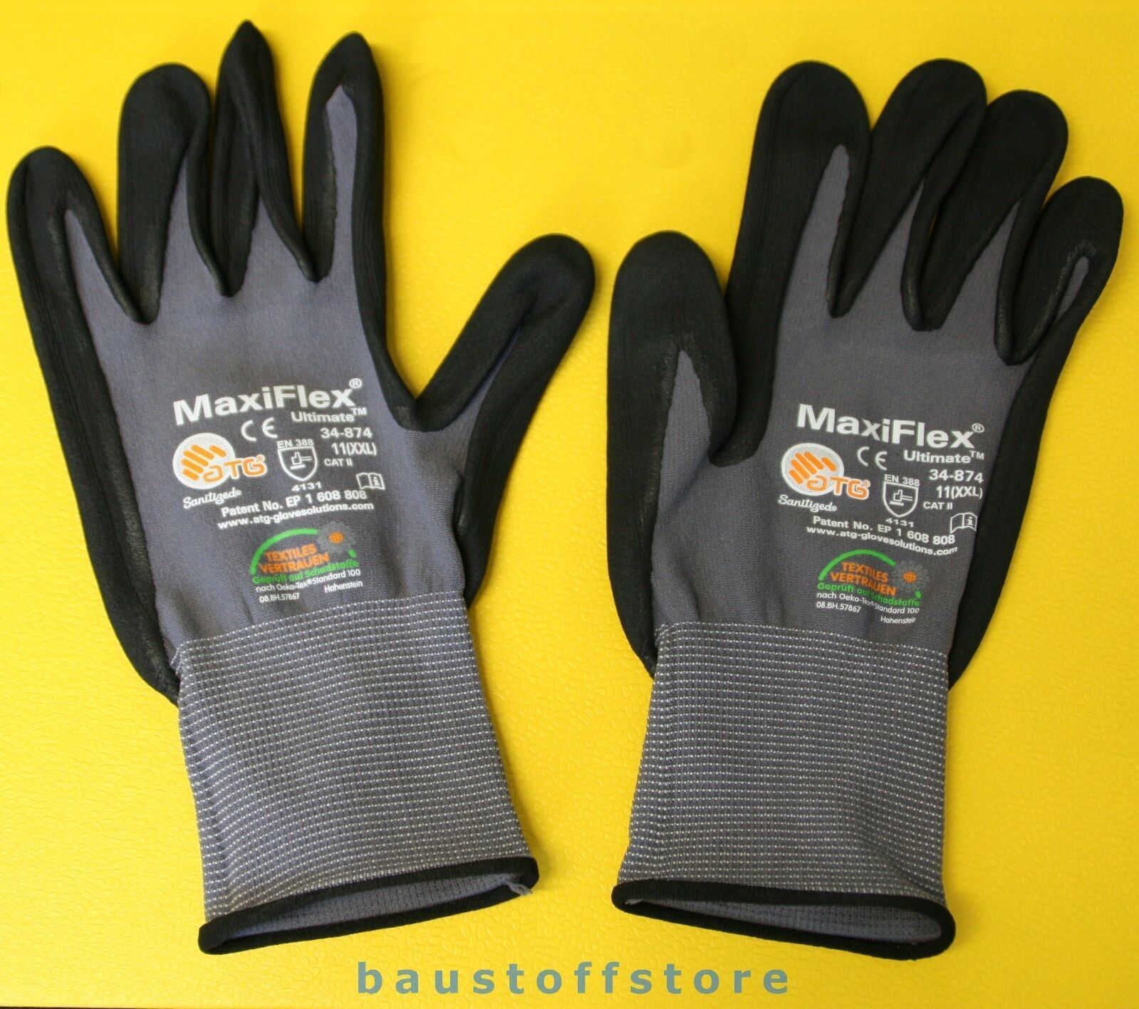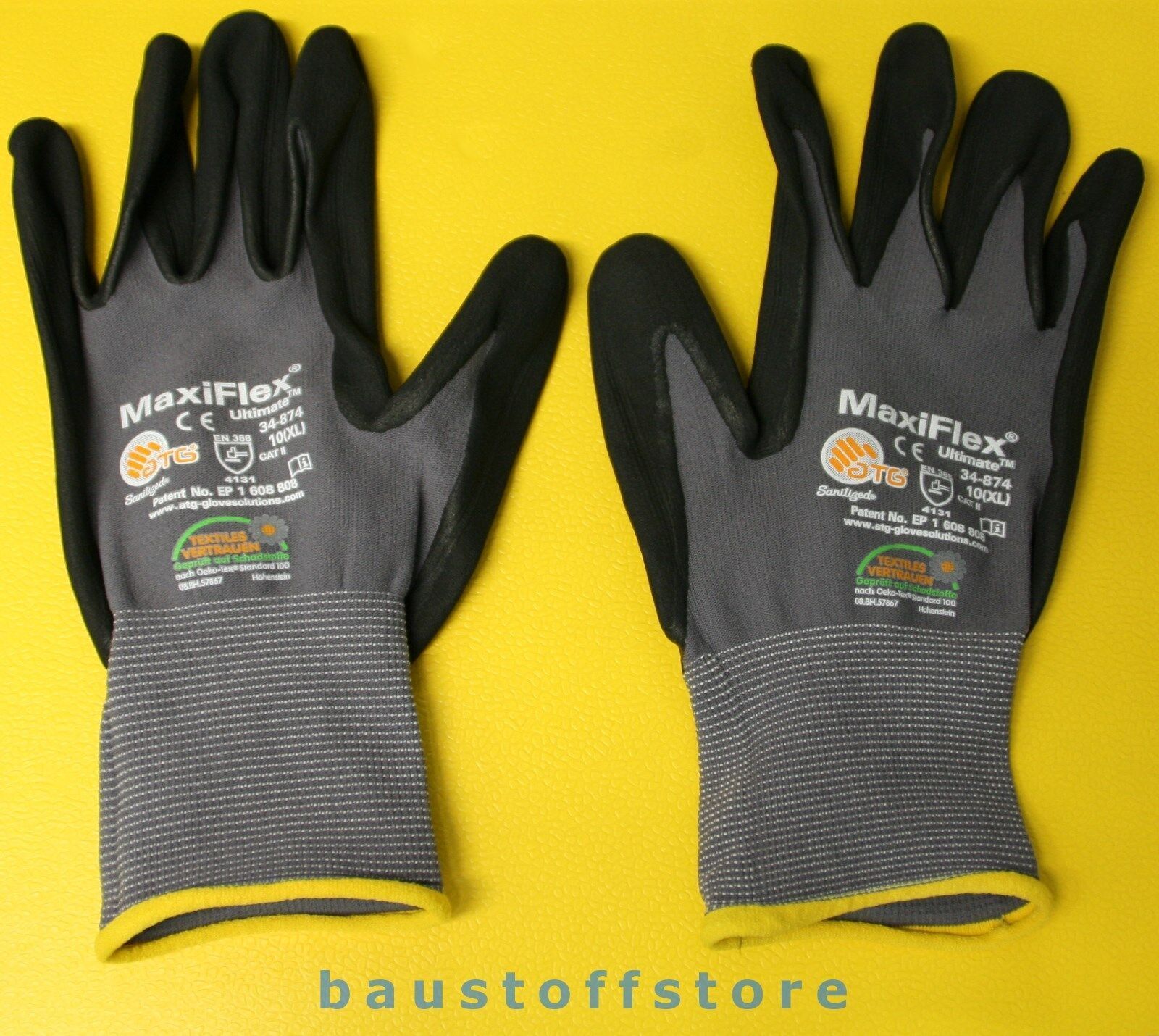 Arbeits- Montagehandschuhe Nitrilbeschichtung 2440 MaxiFlex Ultimate Montagehandschuhe für Präzisionsarbeiten unter trockenen Bedingungen. Wird bei uns auch gern von Bauunternehmen genommen. DURAtech Technologie für extrem hohe Abriebfestigkeit von über 18.000 Zyklen AIRtech Technologie für maximale