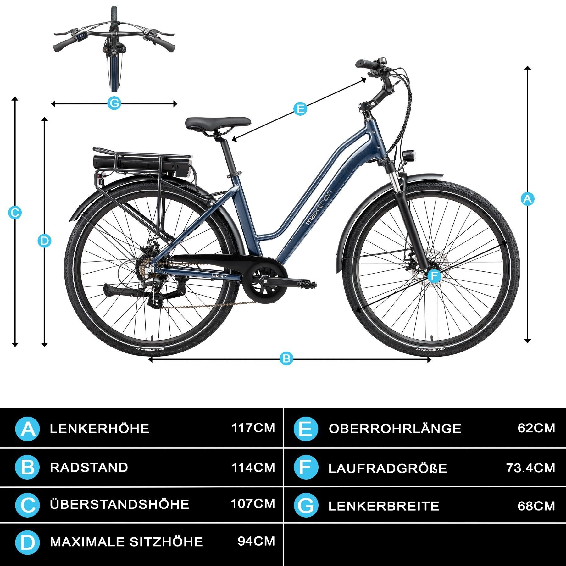 Maxtron Urban7 E-Bike 250W 70km Reichweite 25km/h Elektrofahrrad 36V12.8AH city ebike
