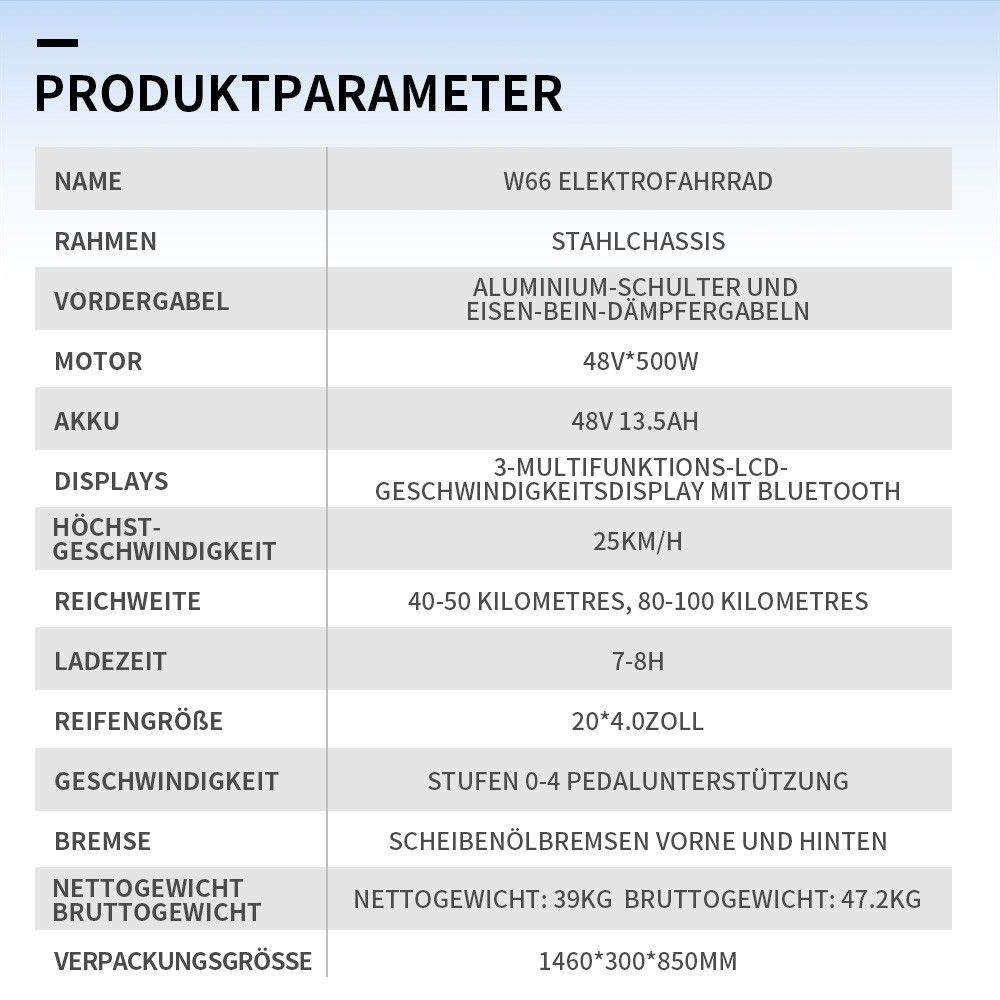 Maxtron W66 20" E-Bike 500W 48V 13.5Ah 80km Reichweite Elektrofahrrad