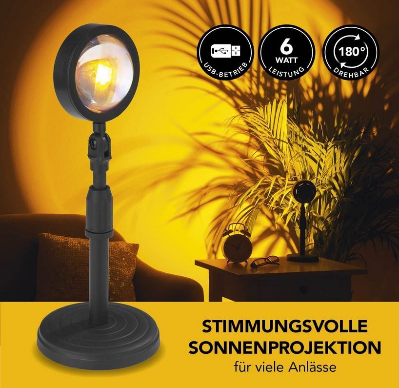 Maxxmee LED-Sunset-Lampe 5V Projektionsleuchte Sonnenuntergangs-Atmosphäre schwarz
