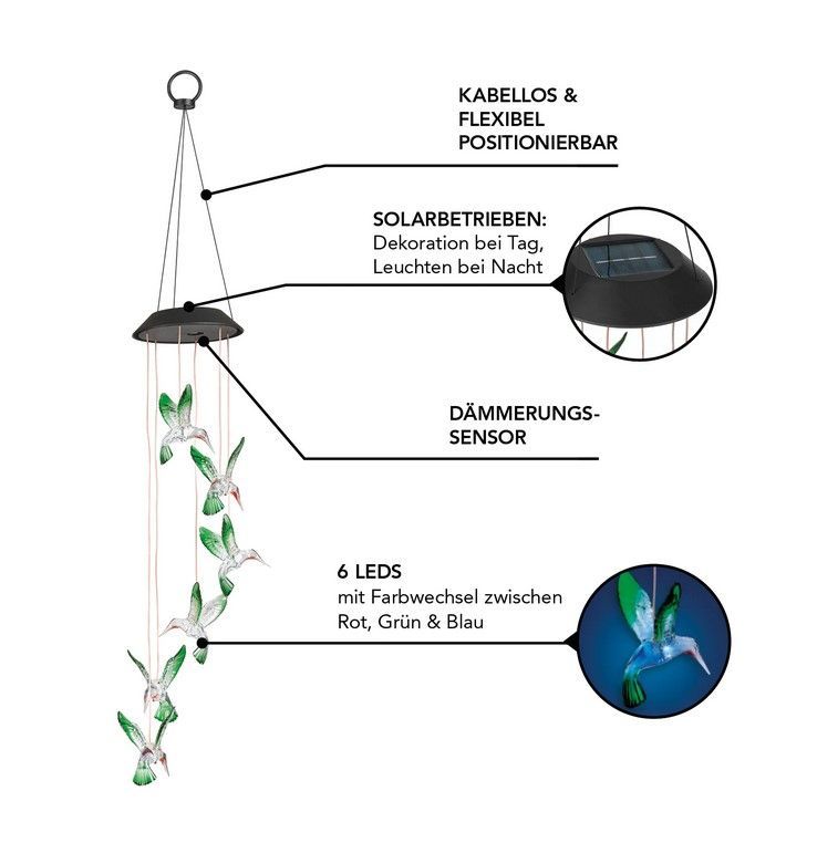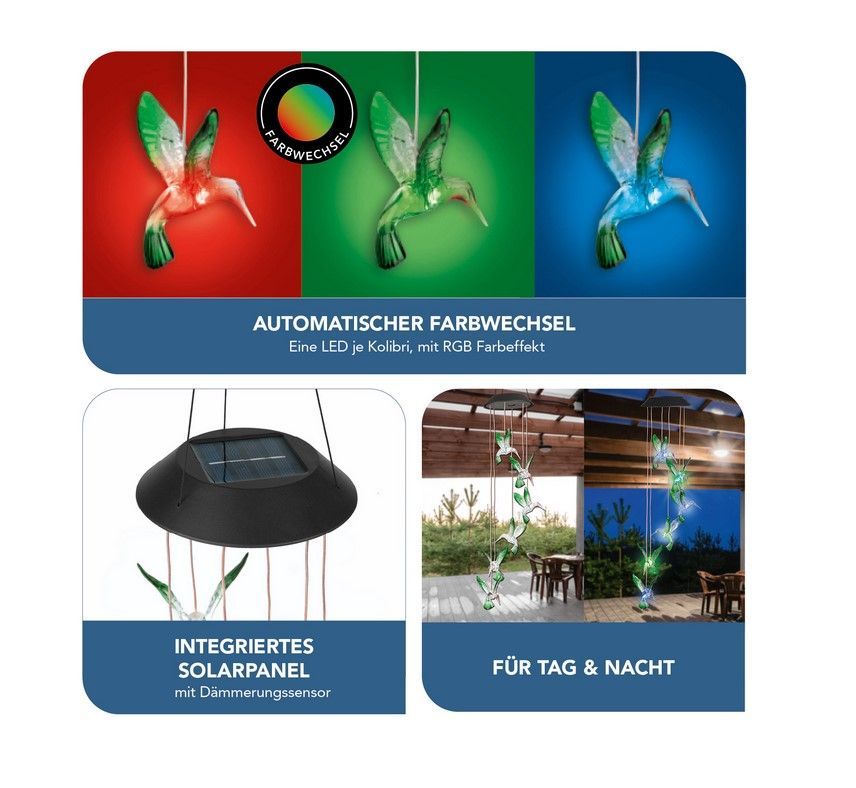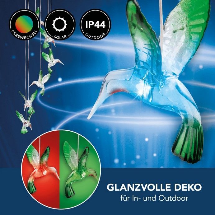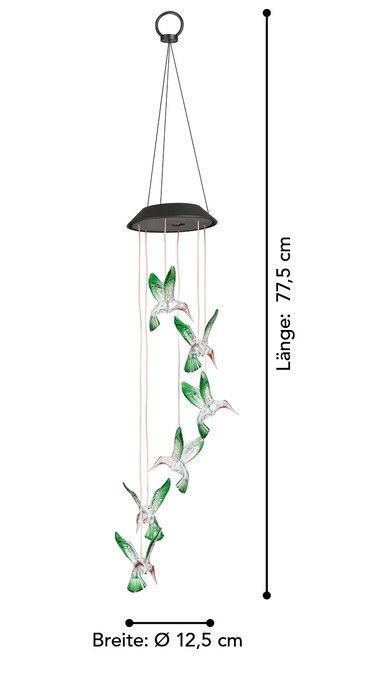 Maxxmee Solar-Windspiel Kolibri LED 1,2V grün/ rot Garten Dekoration Beleuchtung