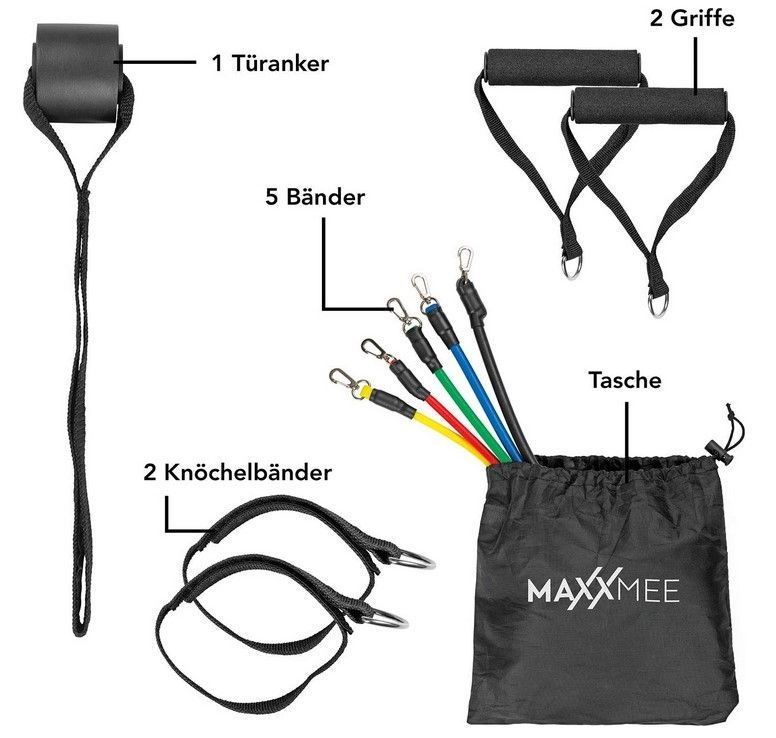 Maxxmee Trainings-Set Fitness-Bänder - 11-TLG. Set | Ideal für das Training zuhause