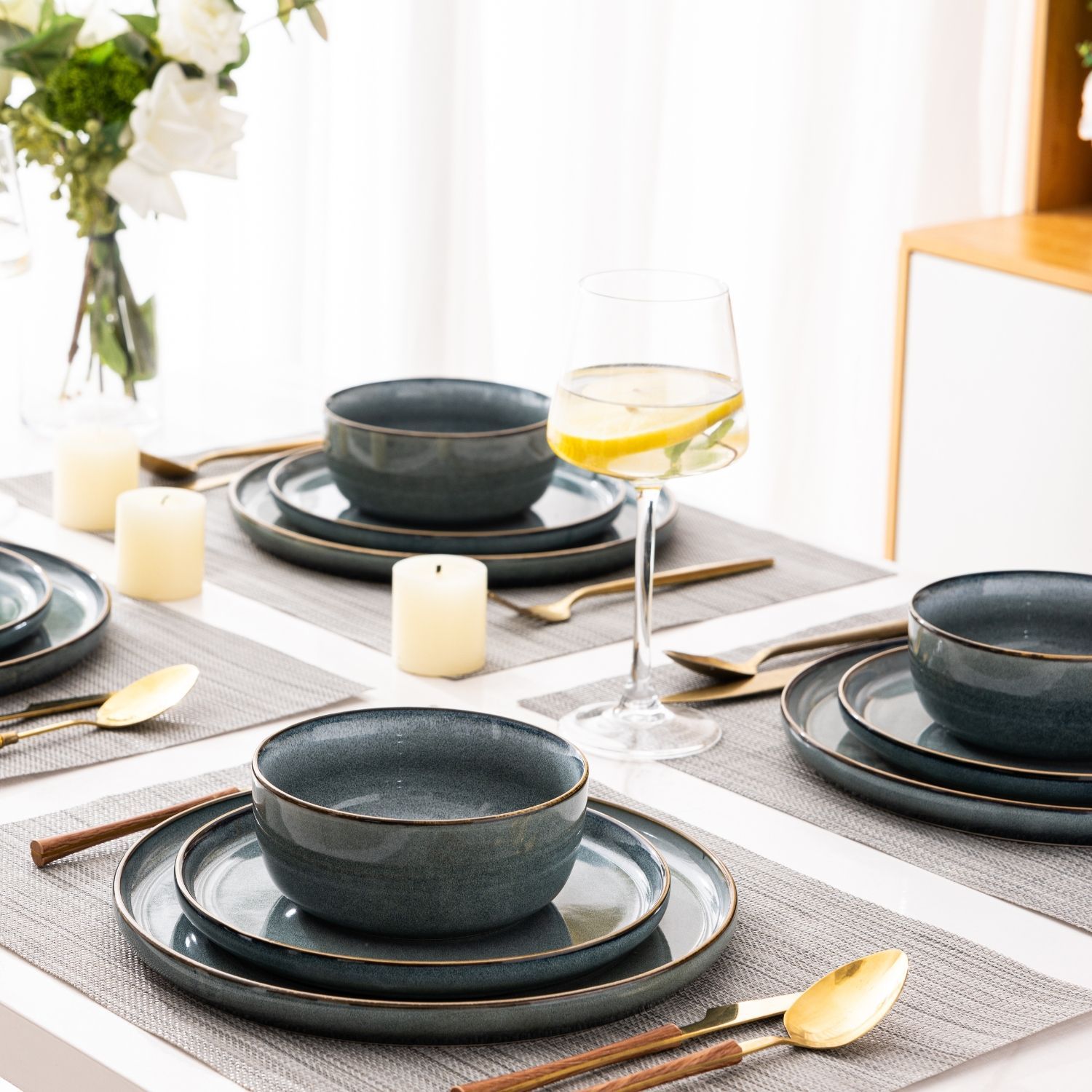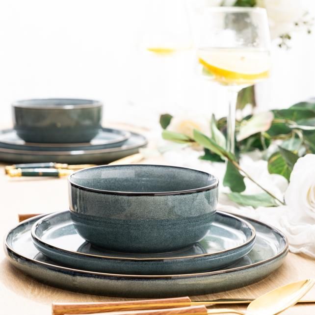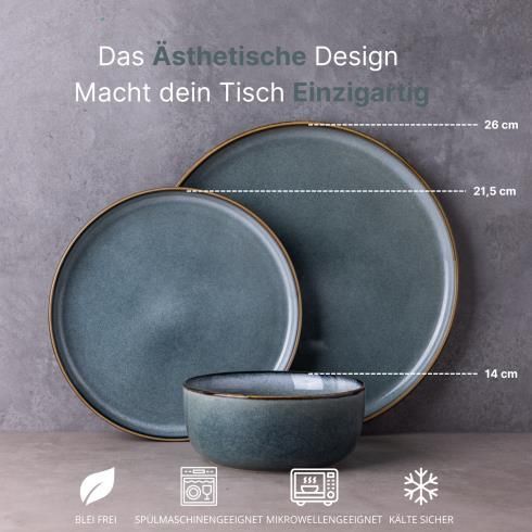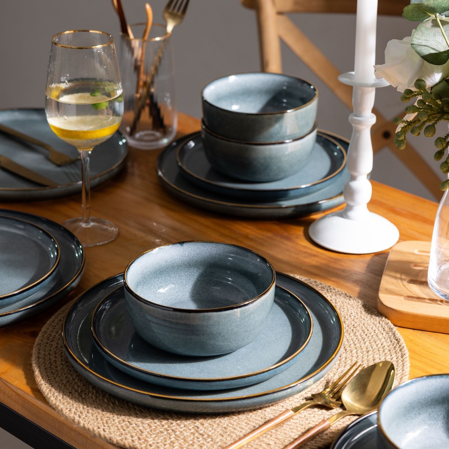 Maya Tafelservice in Ozeanblau mit dunklem Umrandung Geschirr-Set aus Steingut