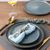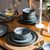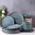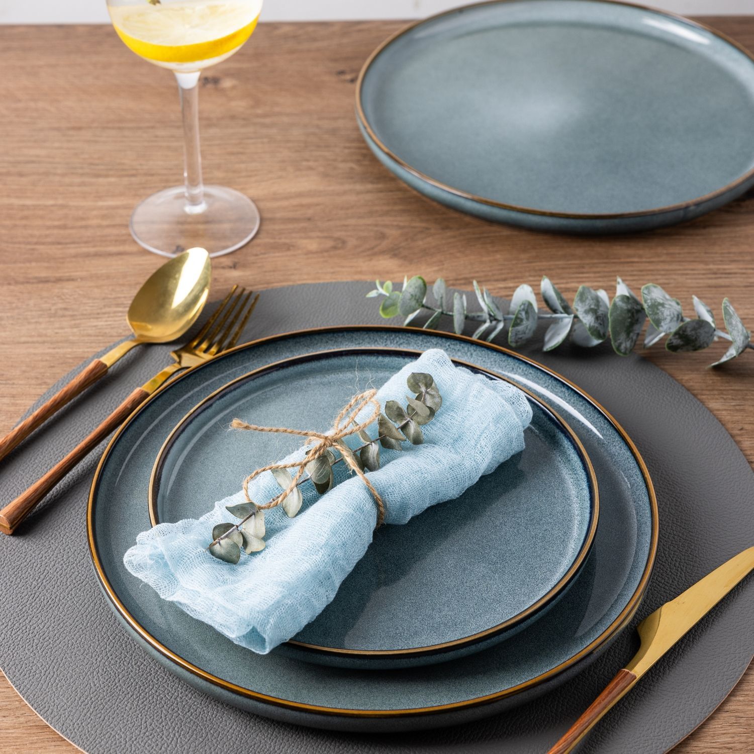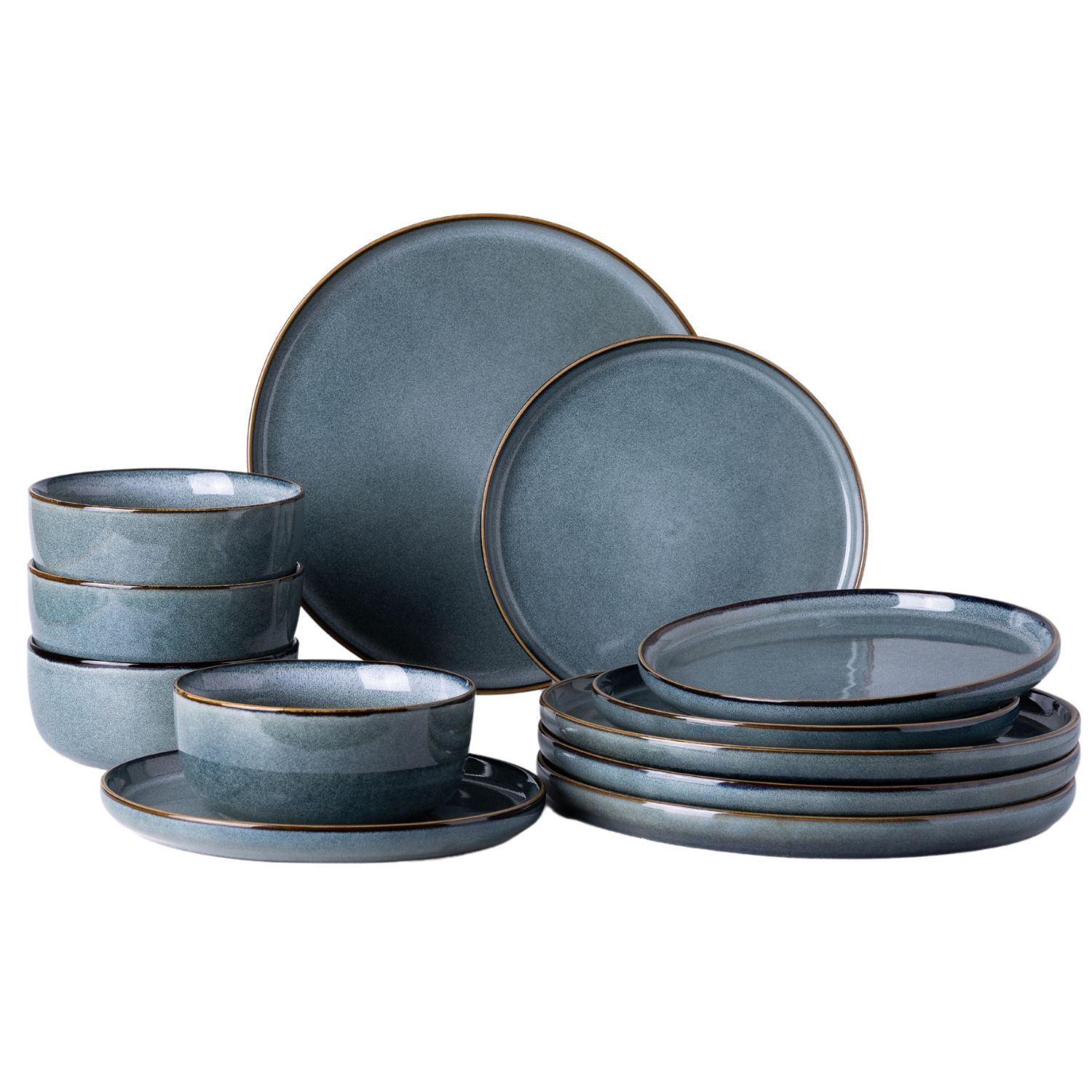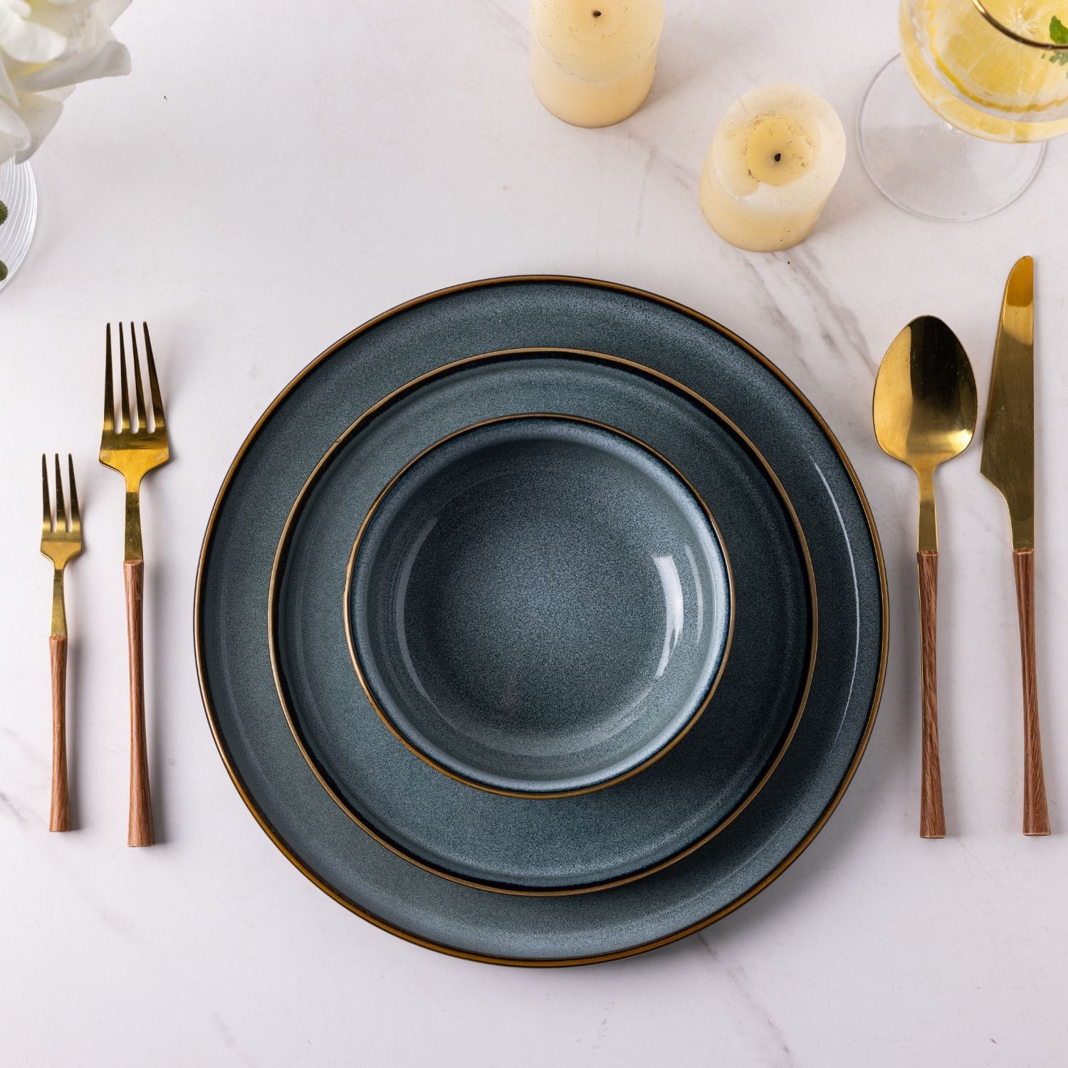 Maya Tafelservice in Ozeanblau mit dunklem Umrandung Geschirr-Set aus Steingut