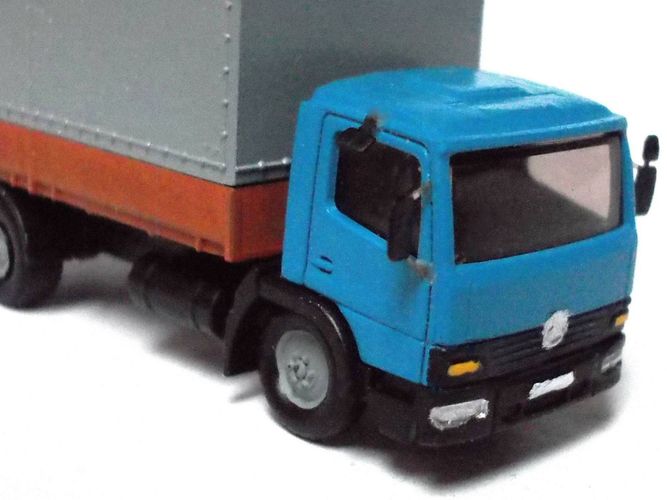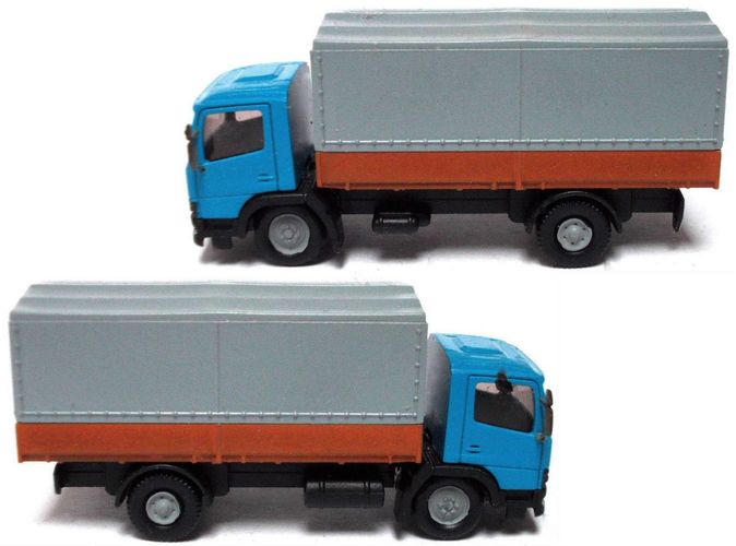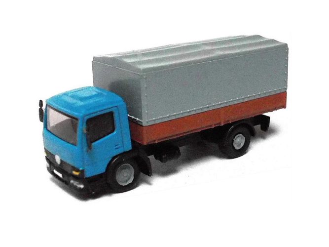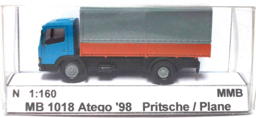 MB 1018 Atego ´98, Pritsche / Plane, blau-grau-braun, Ep5, Wiking-Umbau, Spur N (2)