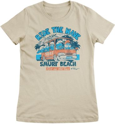 • Die Schlümpfe Damen T-Shirt Ride The Wave-Smurf Beach Girly Tee RB-5-SMF015