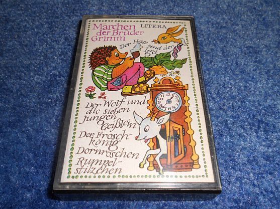 Biete in dieser Auktion an: Kinderkassette aus DDR Zeiten von Litera Märchen der Brüder Grimm 5 Märchen: Der Wolf und die sieben Geißlein, Der Froschkönig, Dornröschen, Rumpelstilzchen, Der Hase und der Igel gebraucht, gut erhalten Da ich viele weitere Artikel im Angebot habe, schaut einfach mal dur