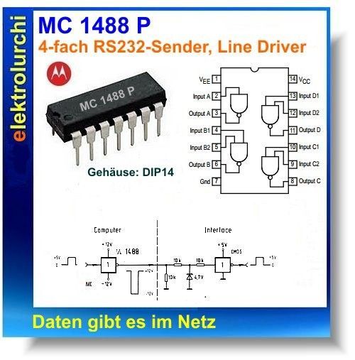 MC1488 P - 4-fach RS23-Sender Line Driver, IC DIP14, Motorola, 2St.