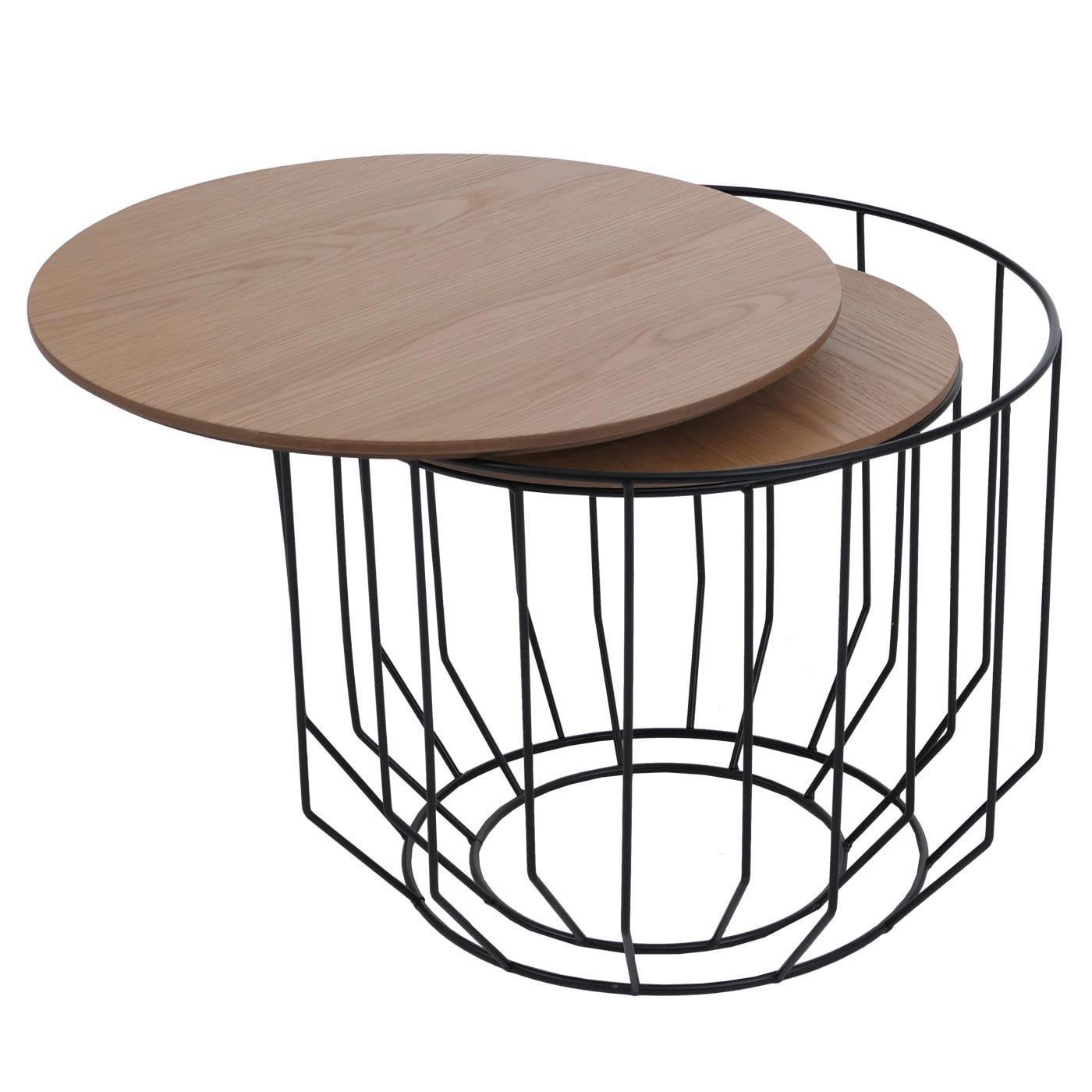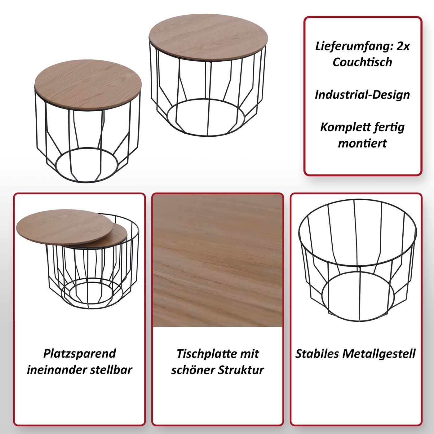 MCA MCA 2er-Set Couchtisch HWC-P58, Beistelltisch Loungetisch, Industrial Metall Holz