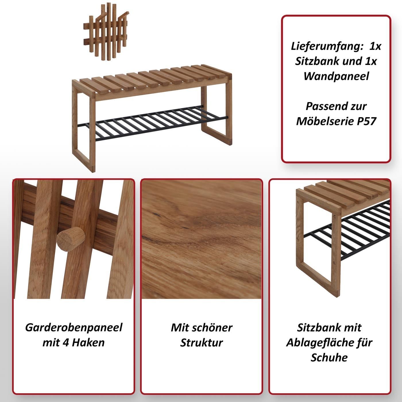 Mendler MCA Garderobenset HWC-P57, Garderobenpaneel Sitzbank, Massiv-Holz Eiche