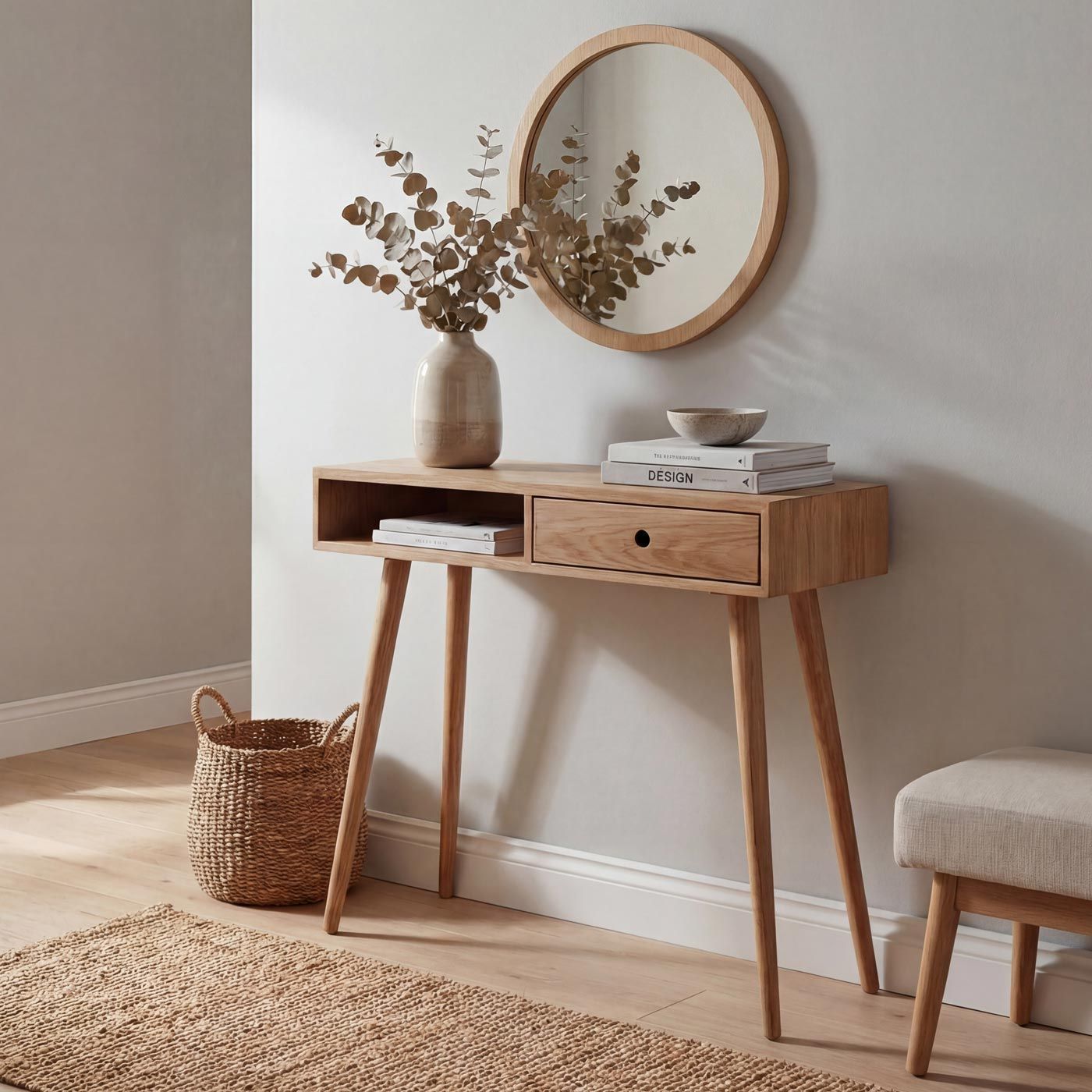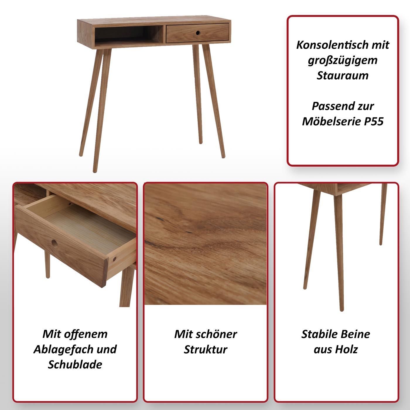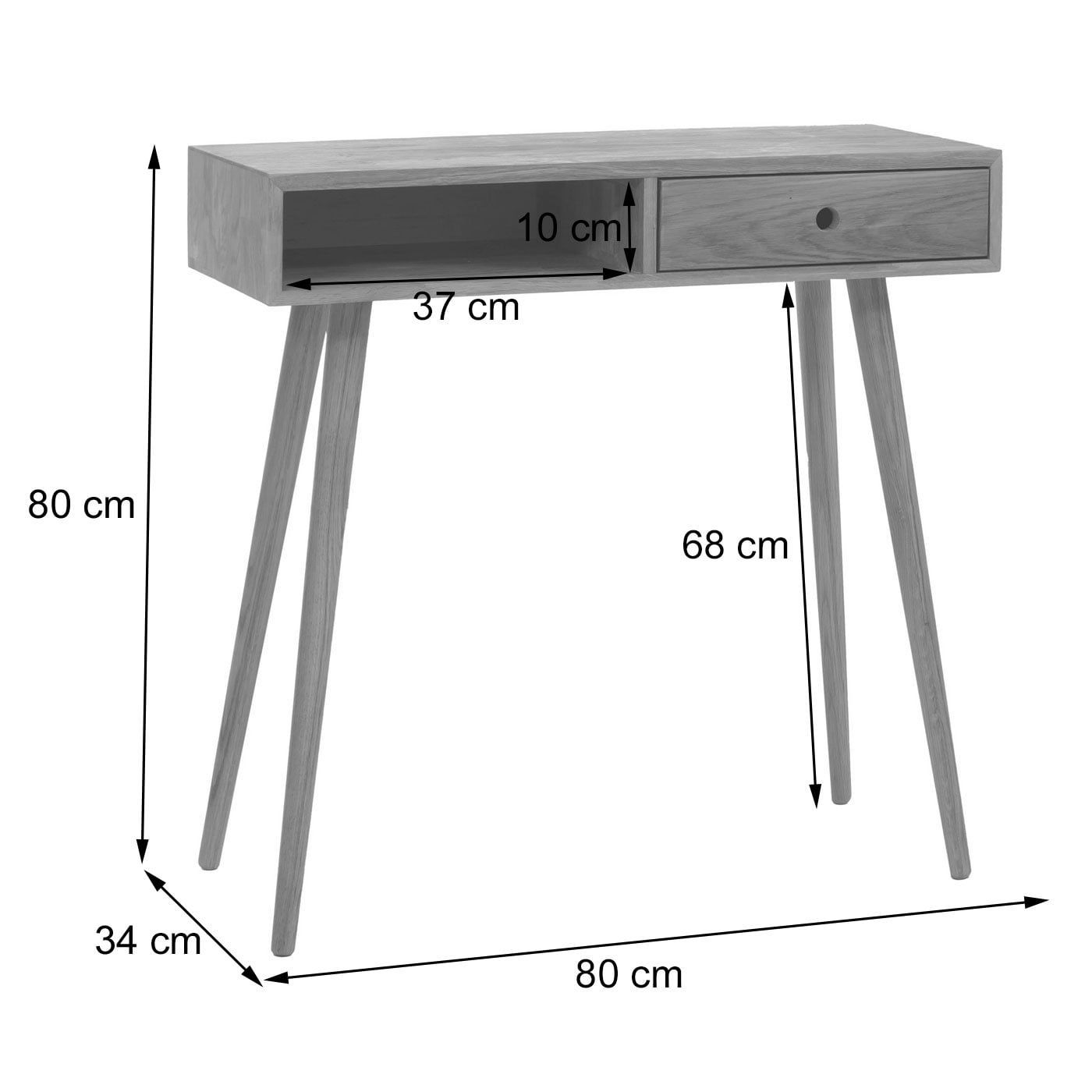 MCA MCA Konsolentisch HWC-P55, Ablagetisch, Massiv-Holz Schublade Staufach 80x80x34cm