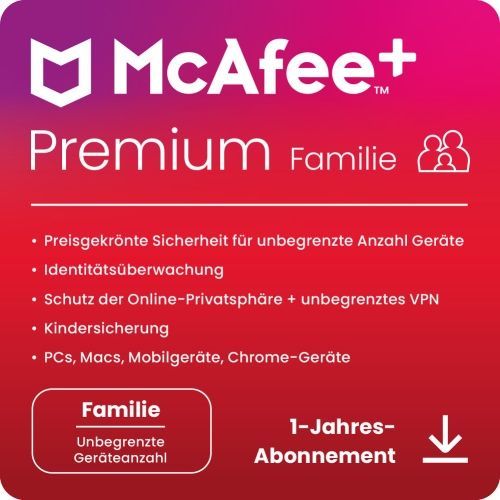 McAfee McAfee+ Premium Family Security - 2 + 4 Nutzer / Unbegr.-Geräte / 1 Jahr - KEY (ESD)