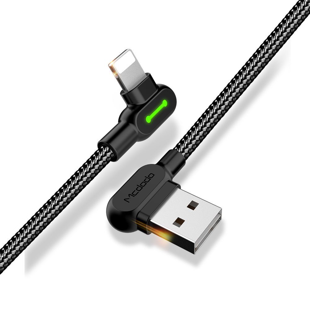 Mcdodo LED 90 Grad M Ladekabel Winkel USB Kabel abgewinkelt Nylon geflochten Schne