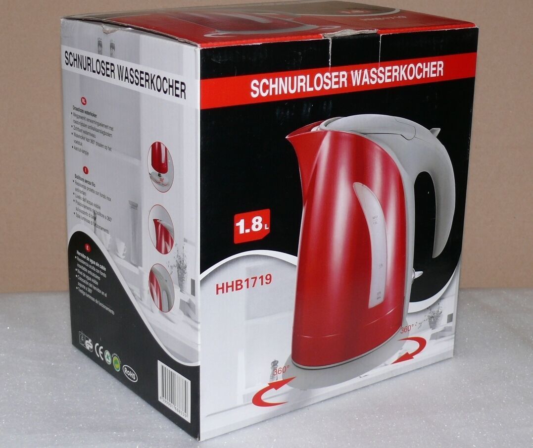 MCK 7119 Kabelloser Wasserkocher Teeautomat Teekocher 2000Watt 1.8L 360° Weinrot