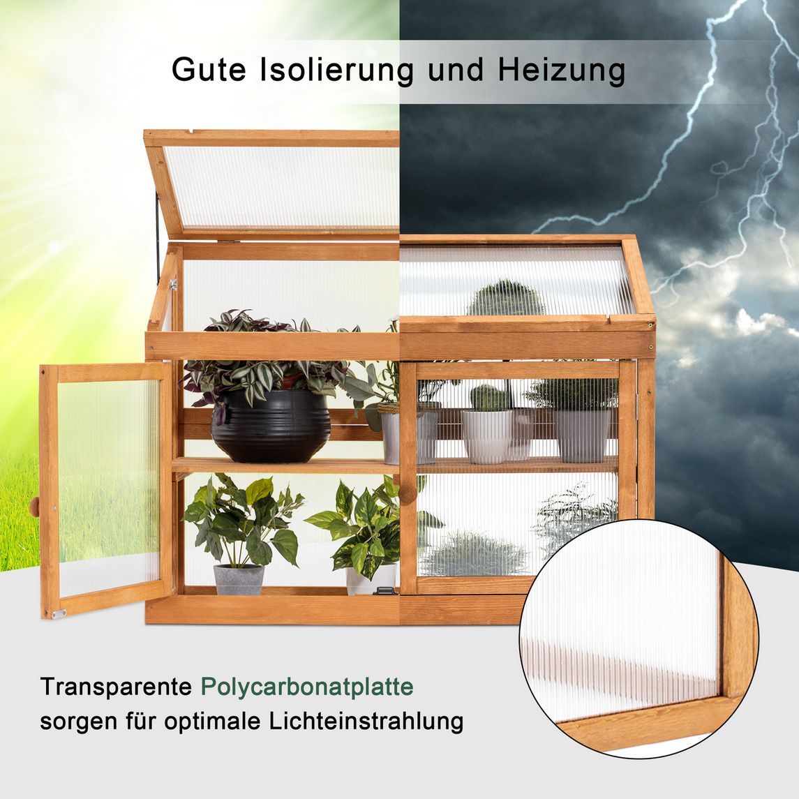 MCombo 2 Etage höhenverstellbares Anlehngewächshaus Treibhaus Pflanzenhaus Holz 0160