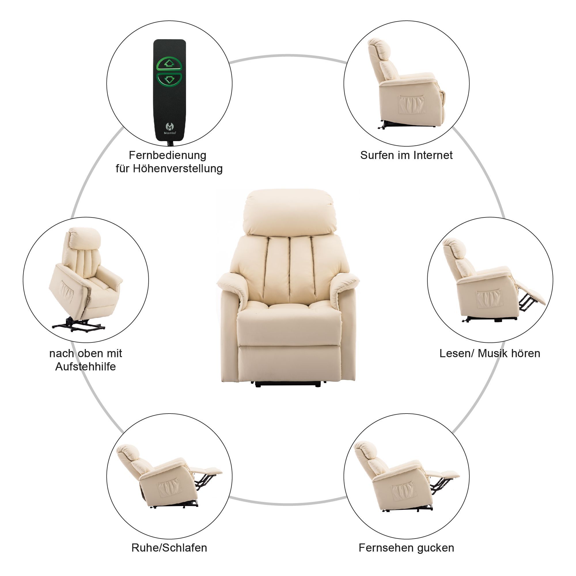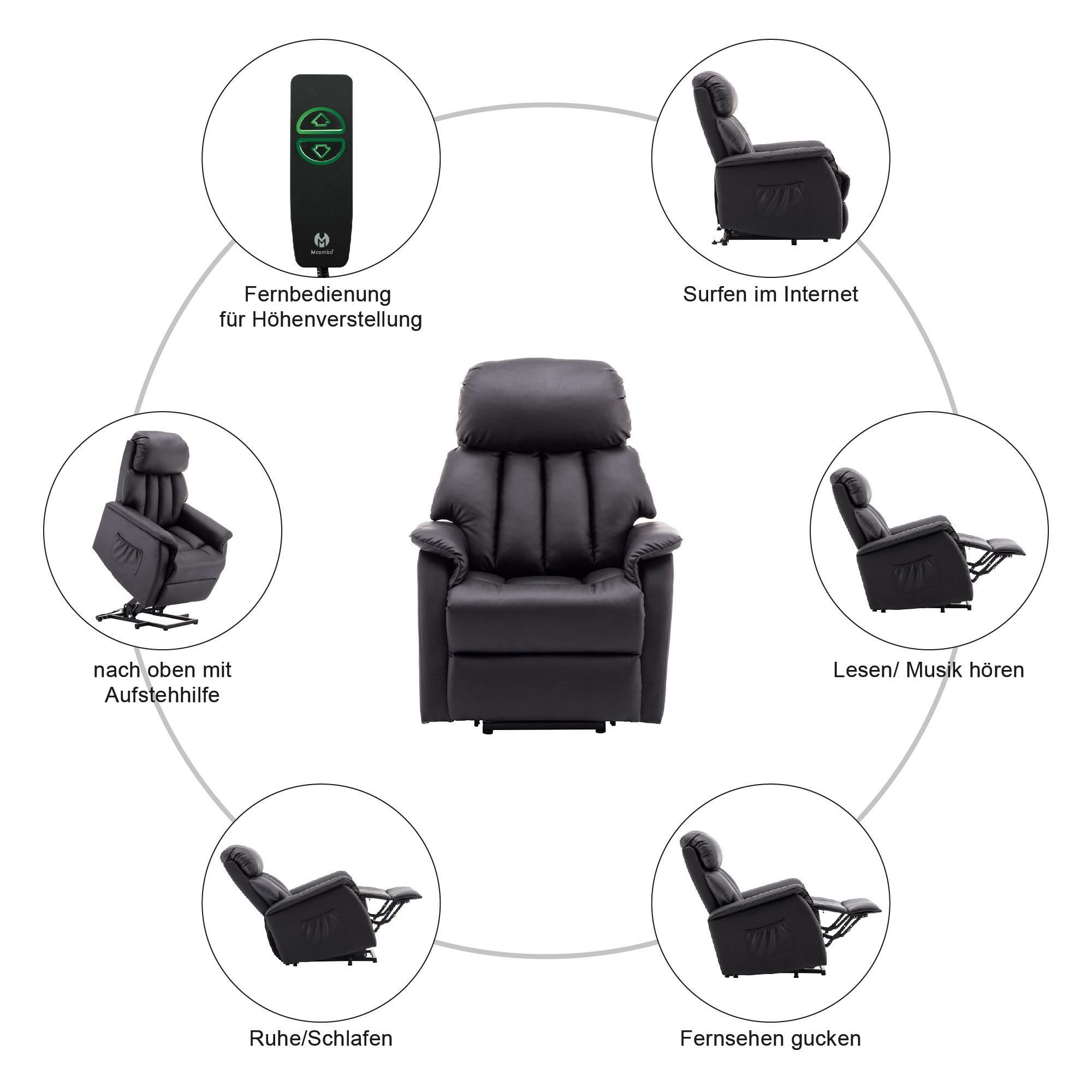 MCombo Elektrisch Aufstehhilfe Fernsehsessel Relaxsessel elektrisch verstellbar 7299