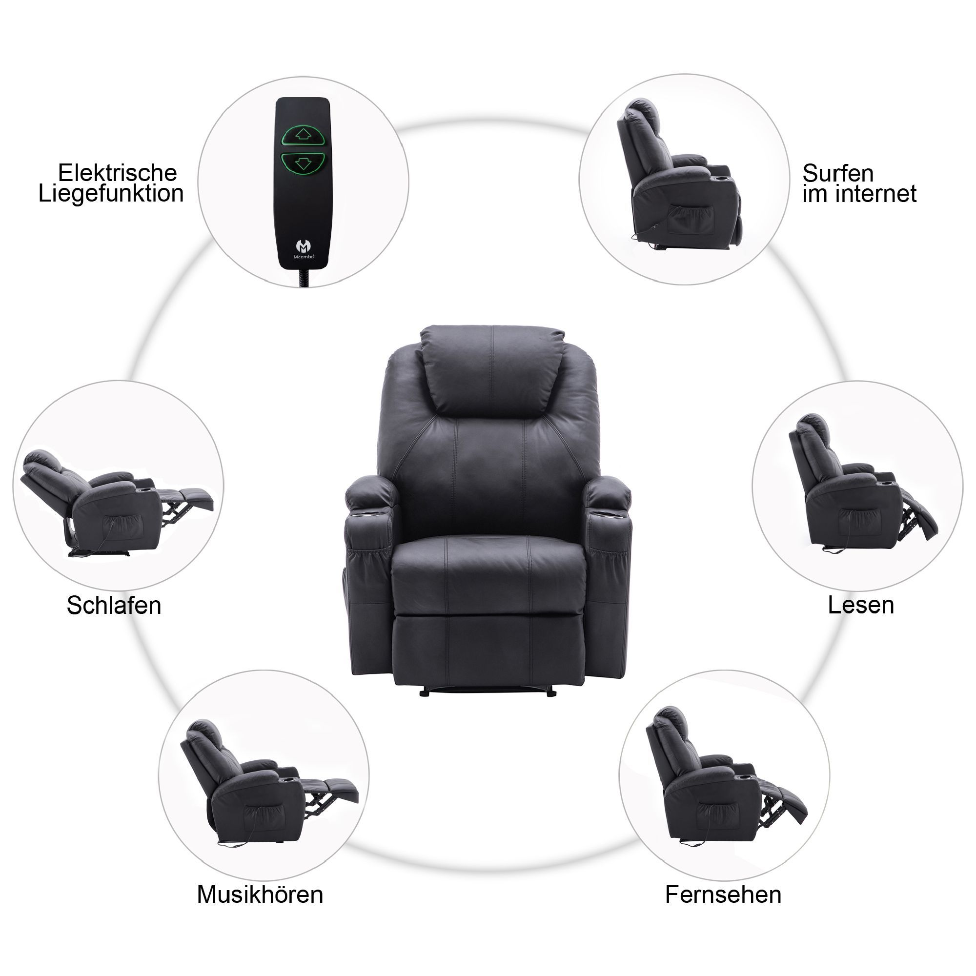 MCombo Elektrisch Relaxsessel Fernsehsessel Liegefunktion Vibration Heizung 7061BK
