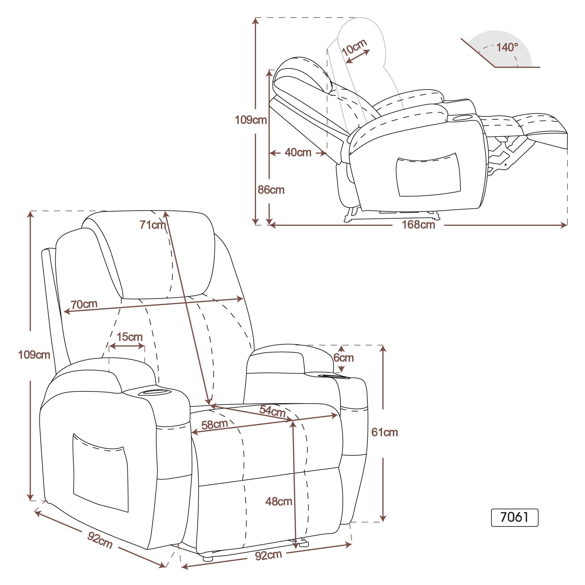 MCombo Elektrisch Relaxsessel Massagesessel Fernsehsessel Heizung 7061DB