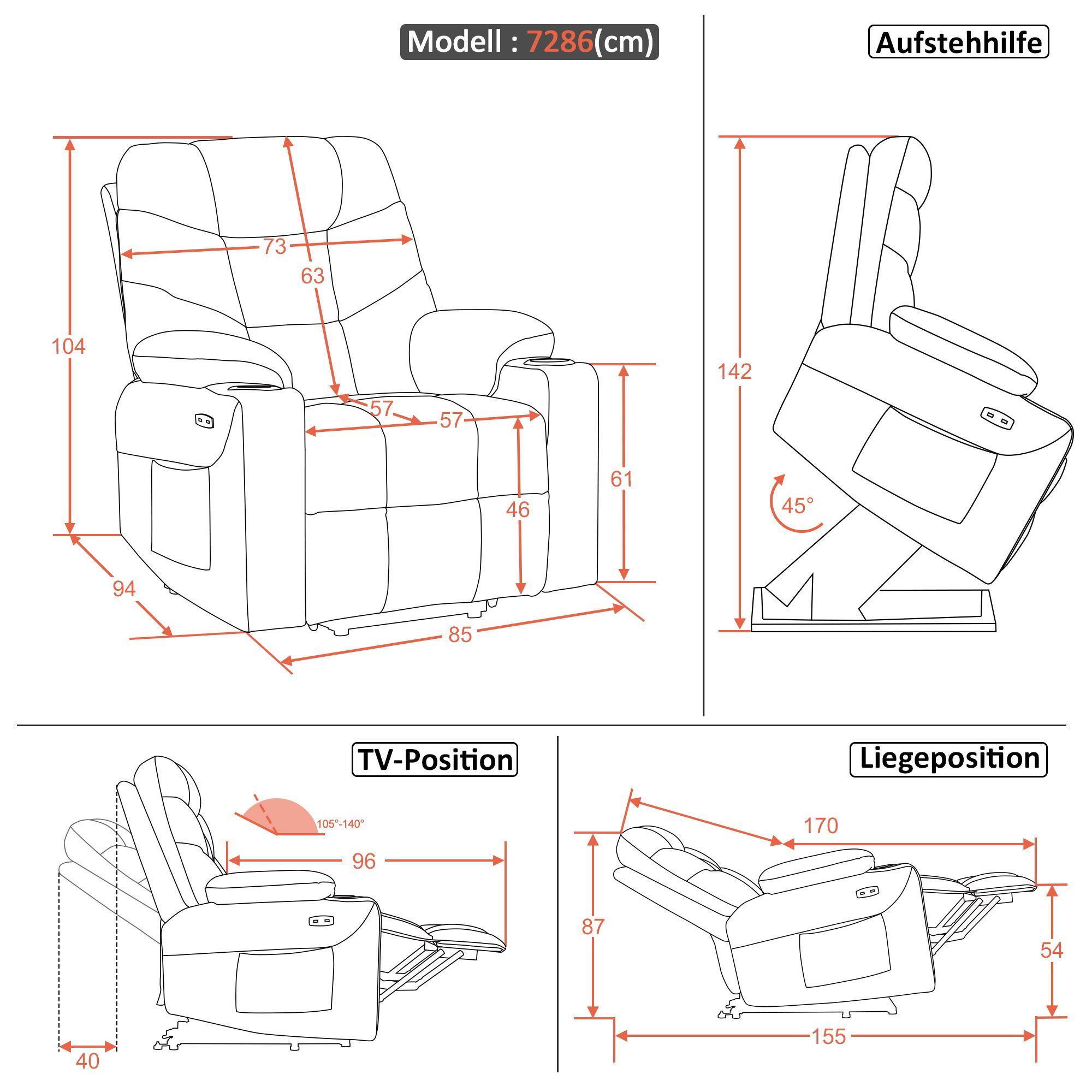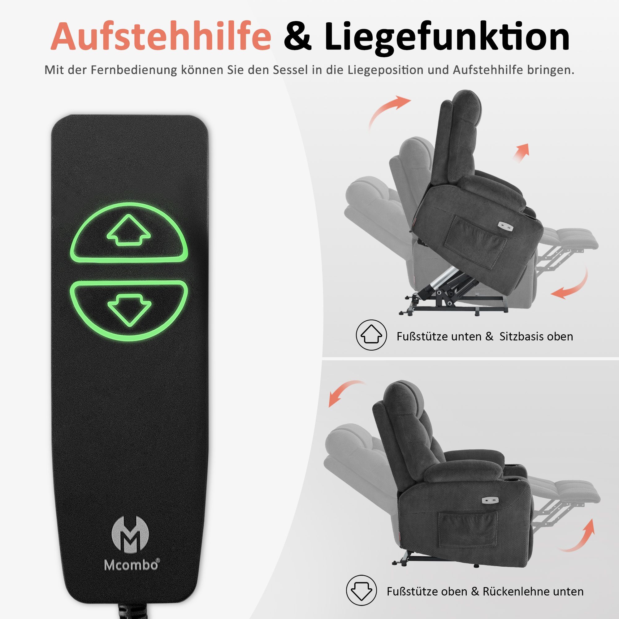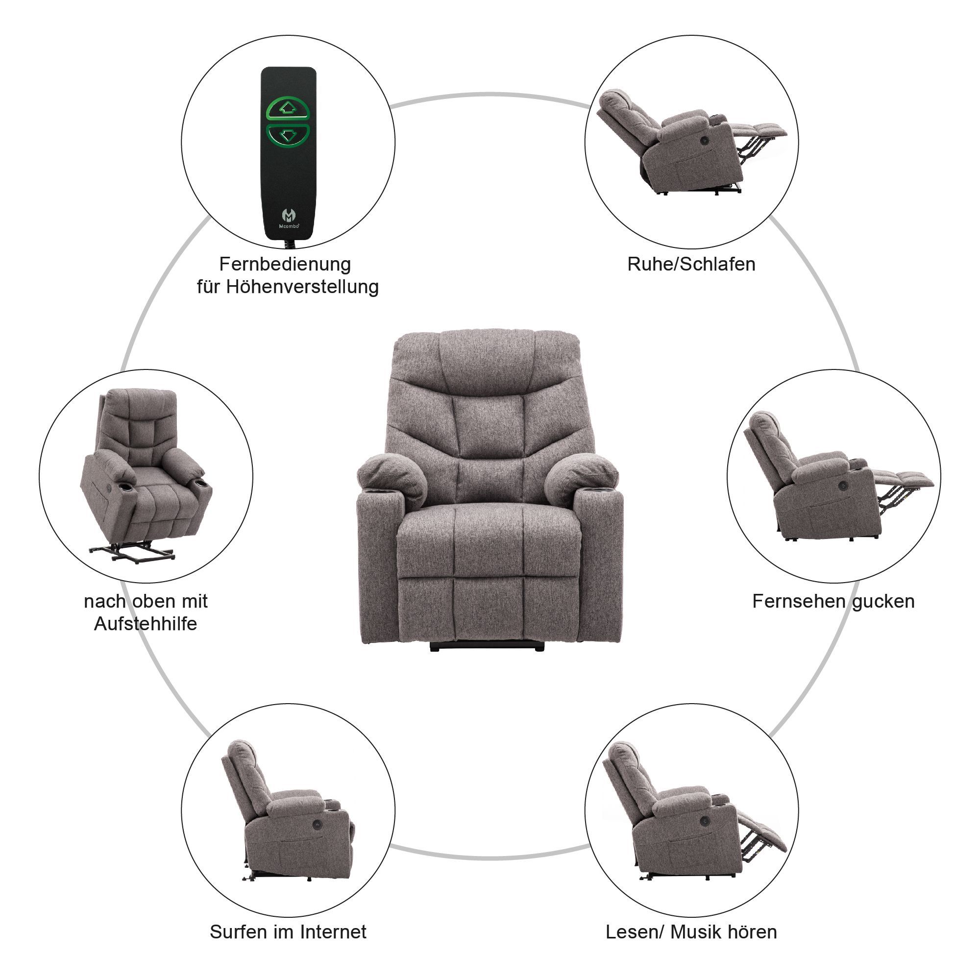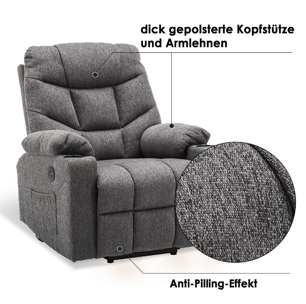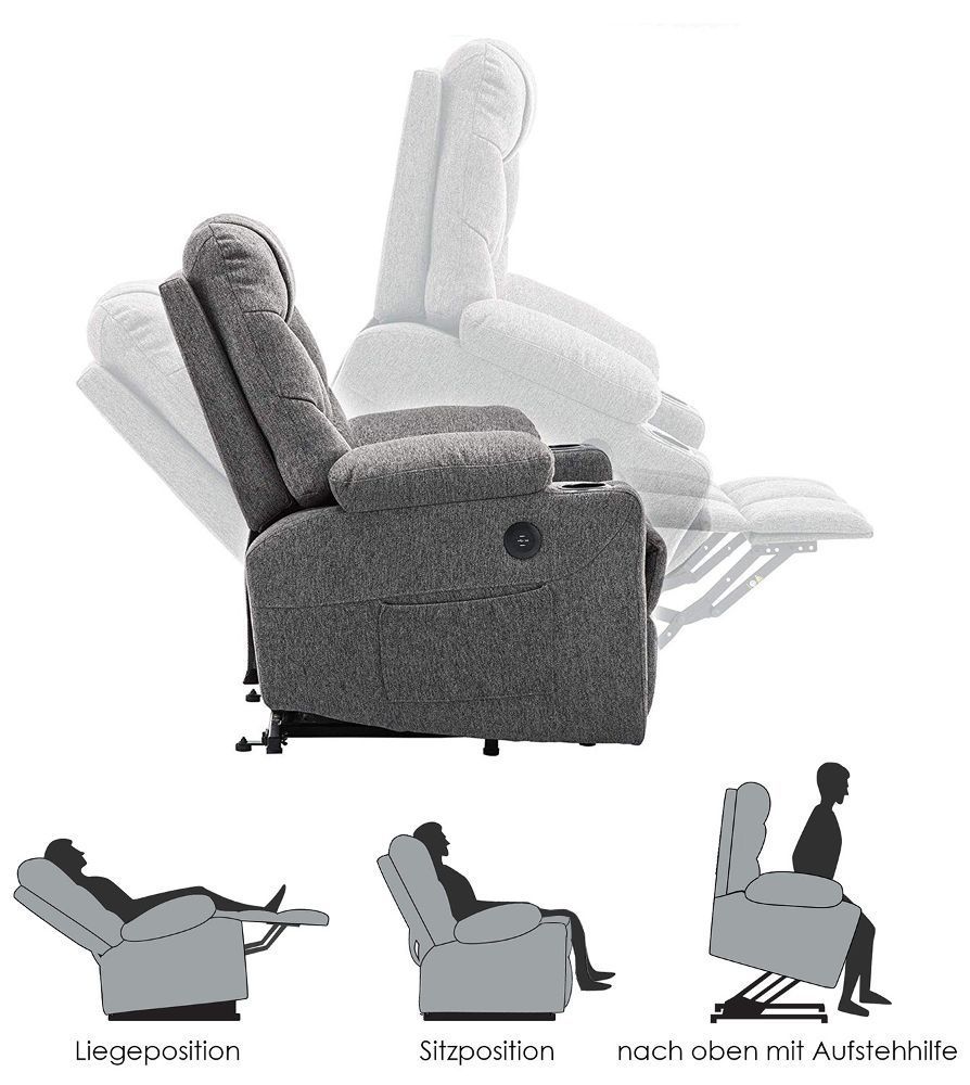 MCombo Elektrischer Aufstehhilfe Fernsehsessel Relaxsessel USB Stoff 7286