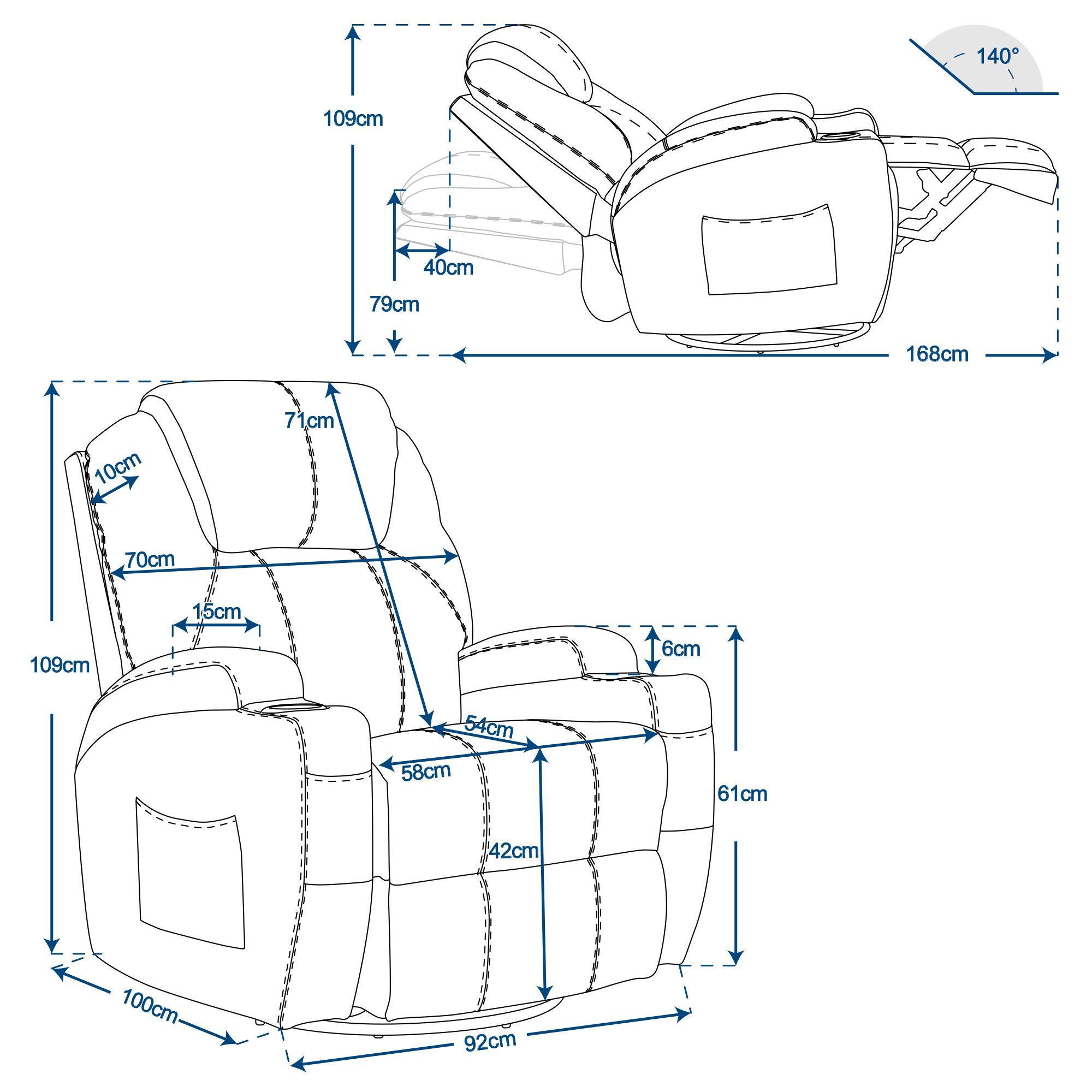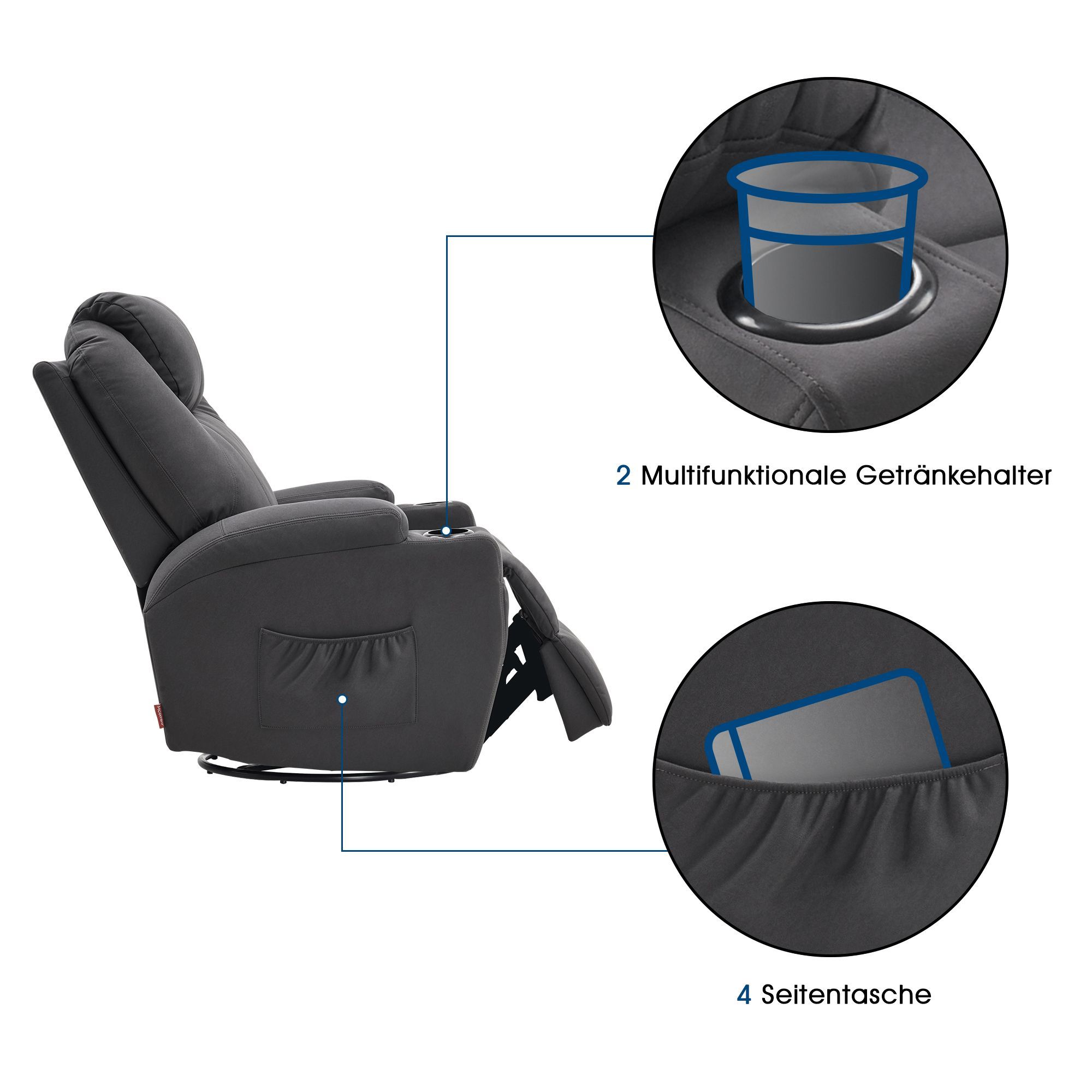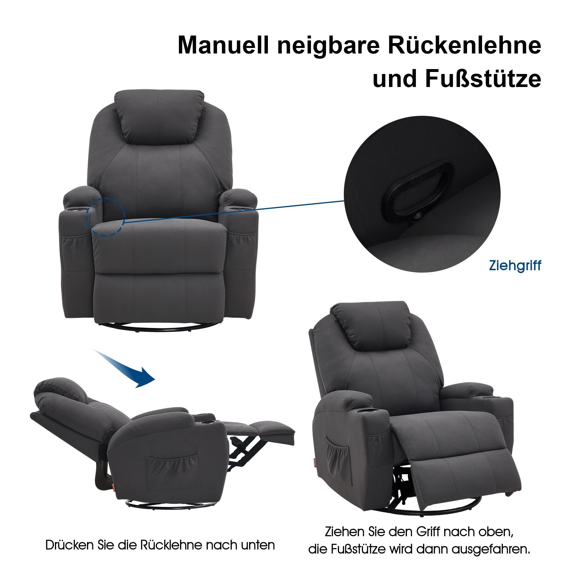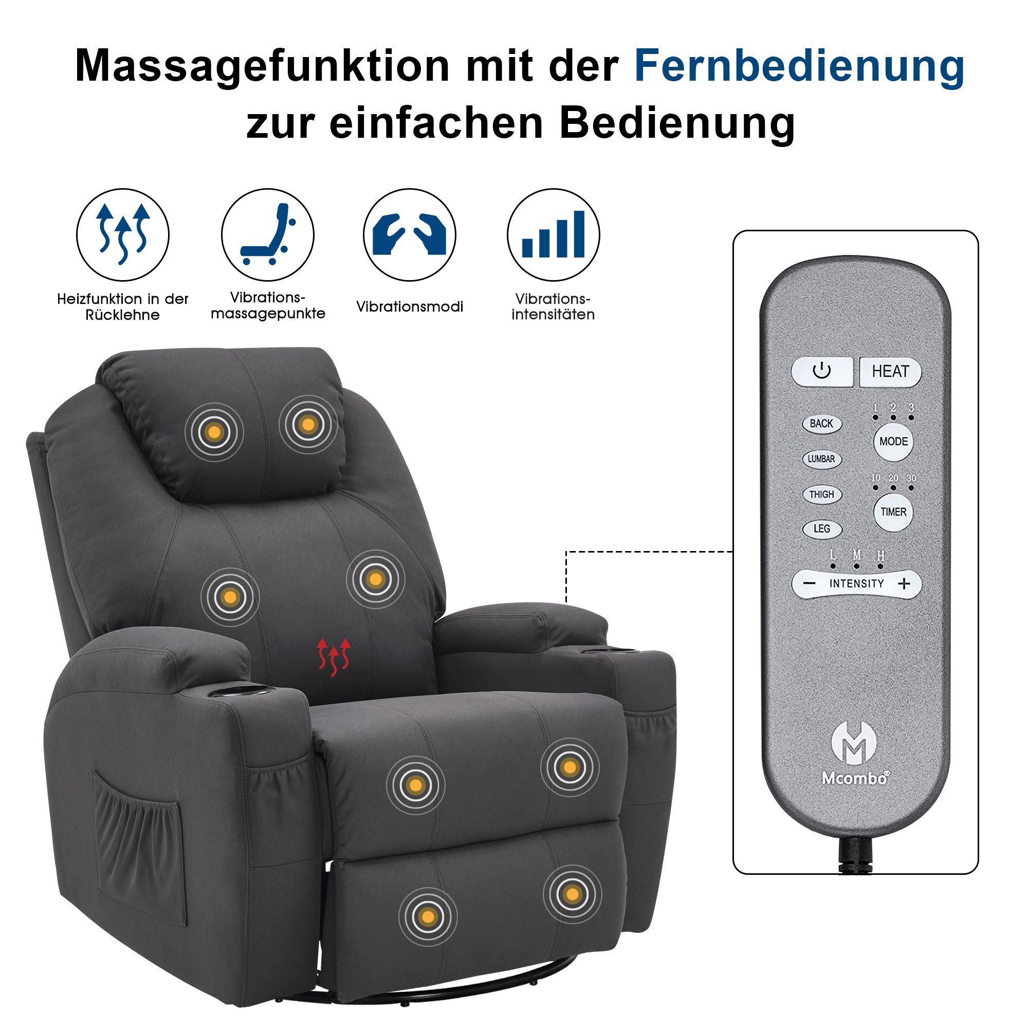 MCombo Fernsehsessel Relaxsessel 7020, mit Heizung, Dreh 360° Schaukel, manuell