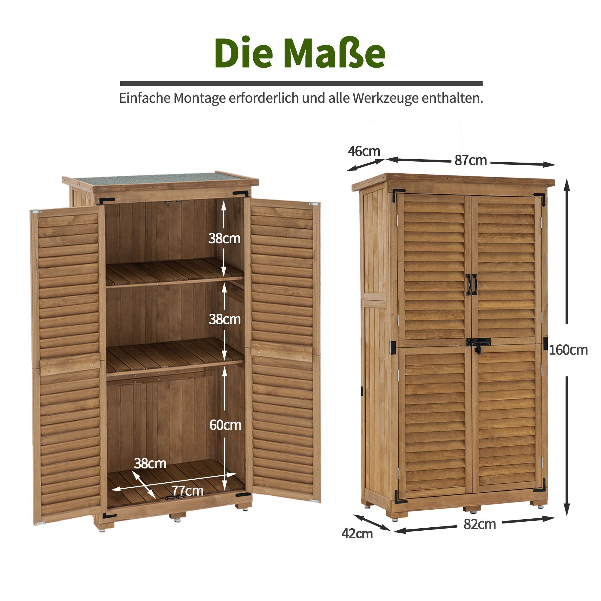 MCombo Gartenschrank Gerätehaus Geräteschuppen Garten Schuppen Schrank Holz 0870