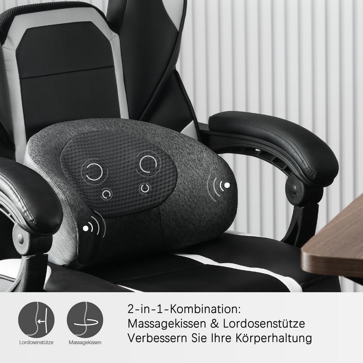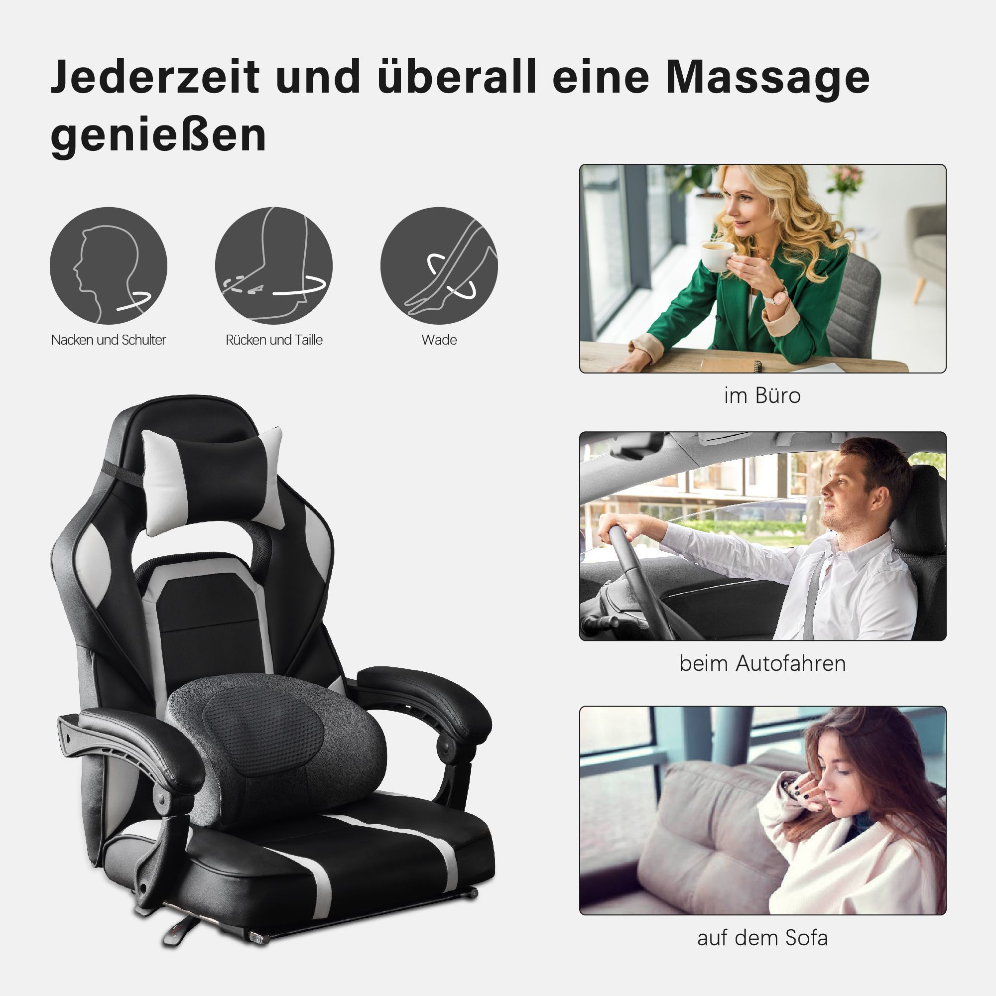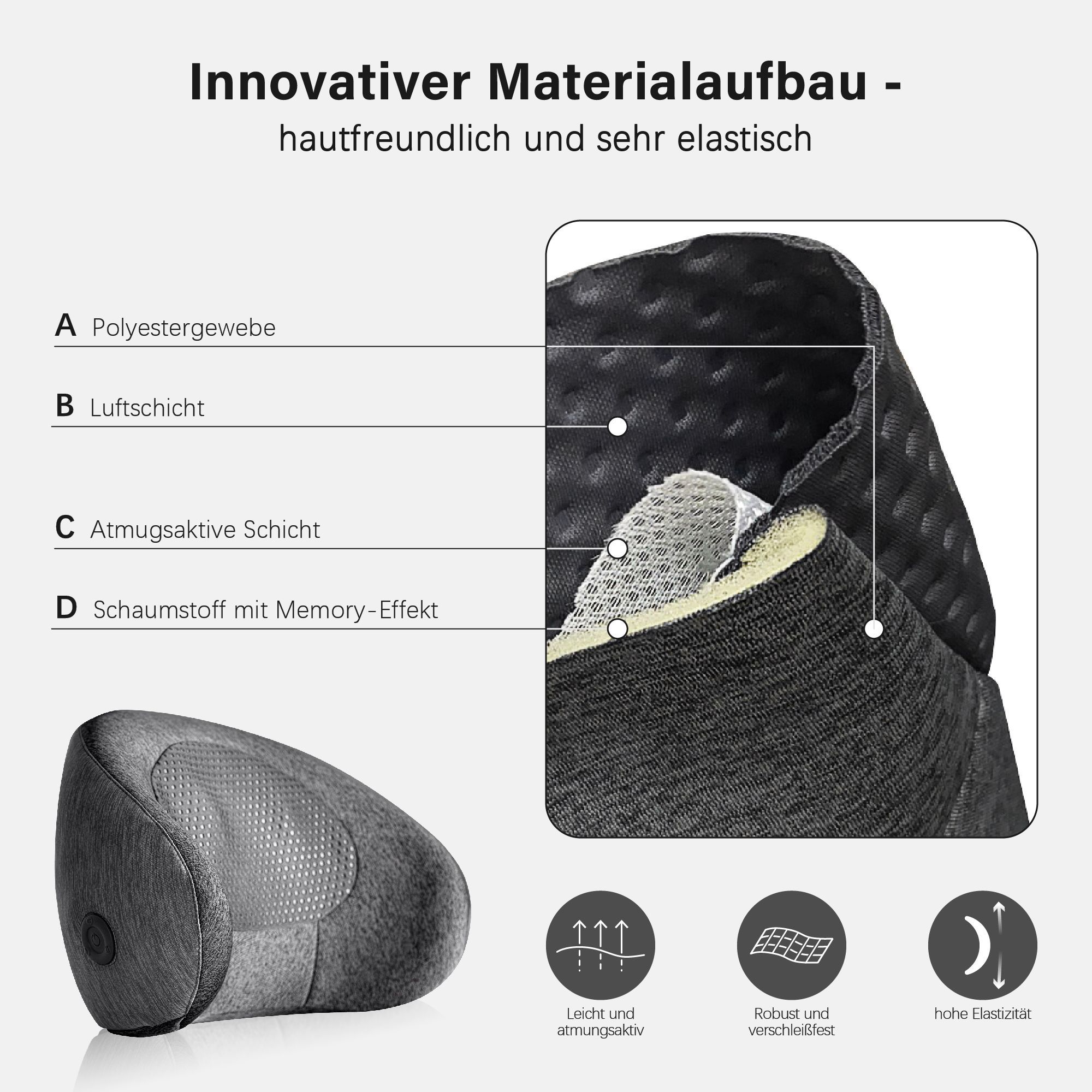 MCombo Massagekissen Shiatsu Heizung + Vibration Kabellos tragbar C-Form Rücken